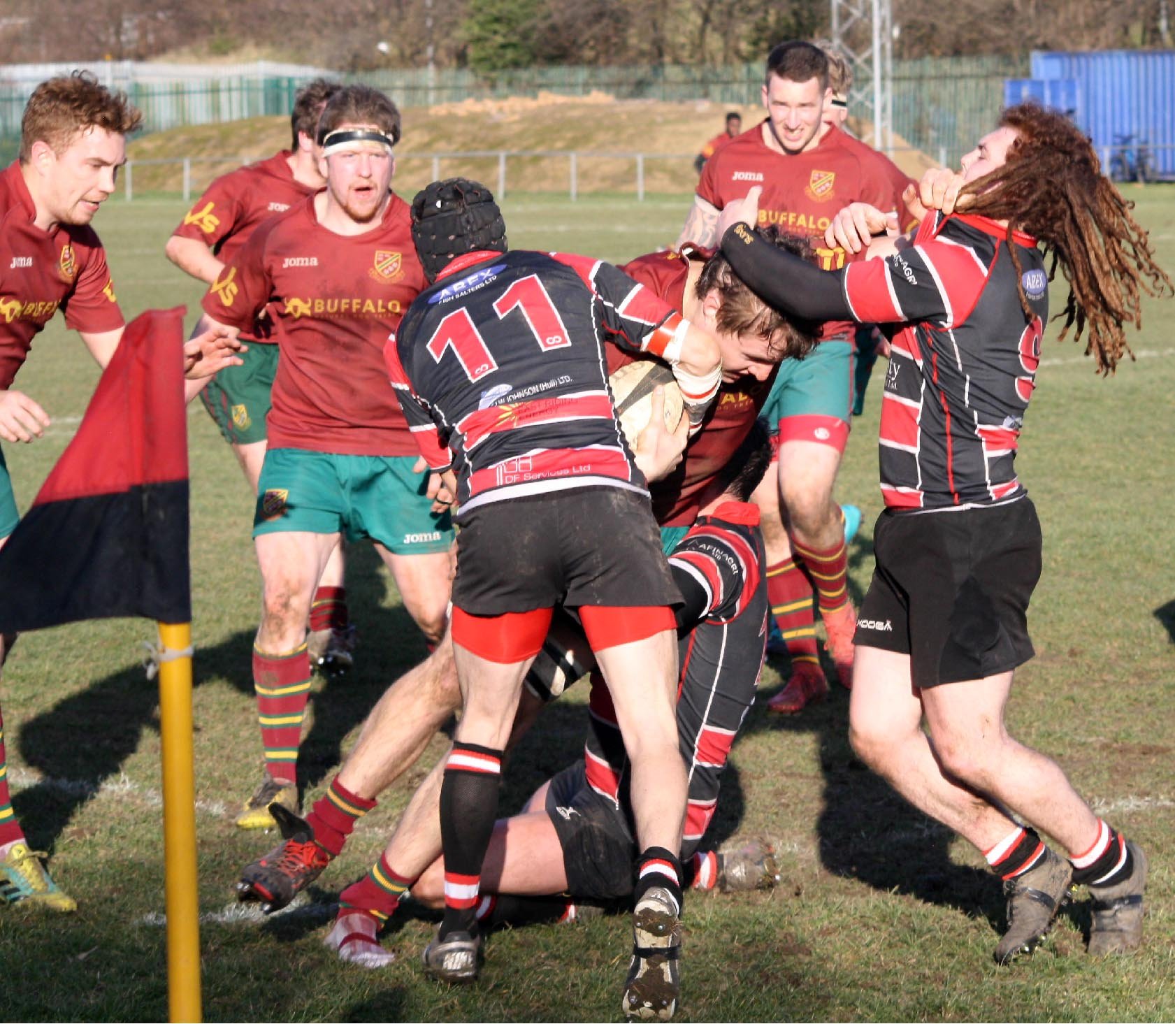 An error from an Hullensians kick off probably was an indication of what the afternoon was going to be like for Heath and their loyal band of supporters as the home side battered the visitors defence in the opening 20 minutes, scoring an unconverted try after wing Tom McCarthy went over in the corner after 8 minutes followed by several desperate tackles to prevent any further score. Heath managed to put in their first real attack as the half hour mark approached. Drives from Richard Brown and Jason Merrie, Michael Reynolds released the Heath backs and a pass from Ezra Hinchliffe saw Alex Patrick drive towards the line only to be held up by a resolute home defence. Hullensians came back into the game strong and Chris Lound added a penalty, 8-0. Chris Piper came on to replace Fergus Marsden as coach Harrison shuffled the pack but Hullensians were not making life easy for the visitors. Heath managed to get on the scoreboard when a penalty from Ezra Hinchliffe sailed between the posts and an 8-3 score-line meant Heath were still in the game but it had been a difficult first 40 minutes.