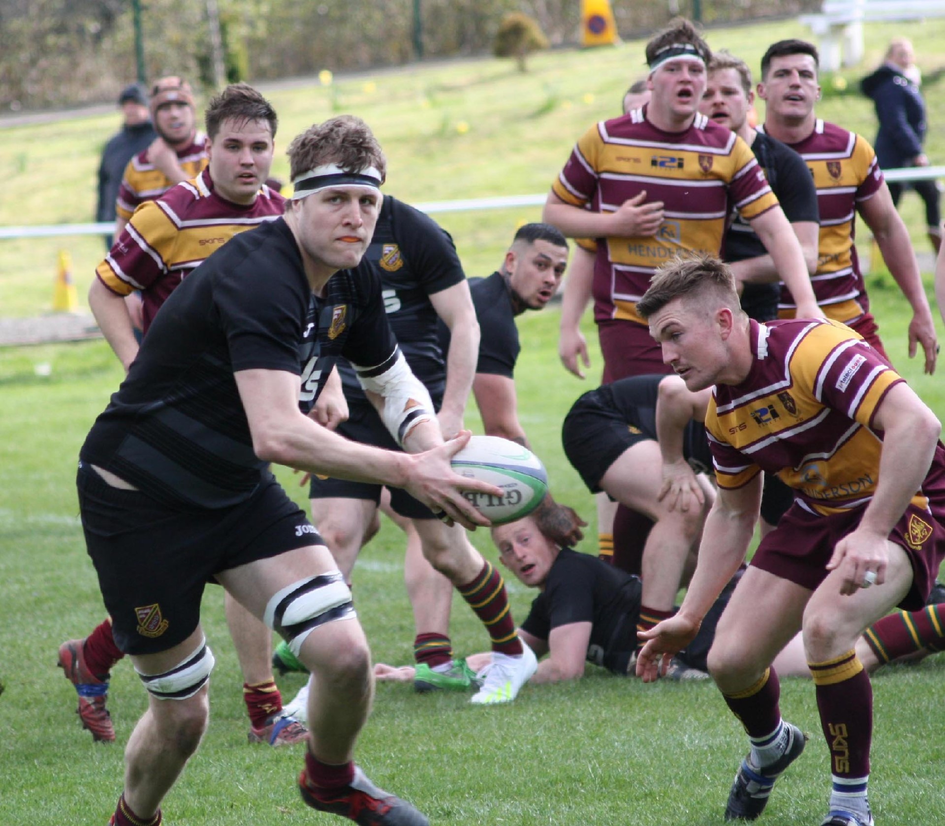 Heath started the game and the home pack got quickly into their stride as they attacked the visitors try-line. Alex Patrick was first to show as he released Michael Reynolds after a strong run but the scrum half was bundled into touch with a try beckoning. From the resulting line out Matt Beasty soared high to snatch the ball and Heath drove forwards. Middlesbrough were under pressure and another penalty saw the home side claim the ball again from line-out and as Jason Merrie drove in, the supporting Patrick came up with the ball for a try and Heath led 5-0 with six minutes played. Middlesbrough re-grouped and came back strongly with a penalty from centre Matthew Todd, 5-3, and ten minutes played. The visitors were beginning to mount a wave of attacks with Heath struggling to contain them and when Dan Cole put in a raking clearance to clear the lines the ball was picked up on the half way line by wing Harry Bryce and he danced his way through several attempted tackles before going under the posts for a try, converted by Todd, and Middlesbrough led 10-5 with twenty-five minutes on the clock. The home supporters were beginning to think a shock result could be on the cards. The visitors backs were making inroads into Heaths defence as coach Harrison sent on Chris Moore and Fergus Marsden replacing Beasty and Piper to try and stem the flow but they could not prevent Middlesbrough scoring a second converted try on thirty five minutes when Conner Foley evaded several tackles to go under the posts, converted again by Todd, and a lead of 17-5. Heath went in search of a score and following excellent work from Chris Robinson and Dave Skinner Middlesbrough were under the cosh and gave away a penalty with Dan Cole reducing the arrears 17-8. With half time approaching Heath wanted another score and from a controlled scrum Michael Reynolds and Dan Cole released Chris Robinson and his inside pass to Issy Spooner enabled the centre to go over the line for a converted try and a score of 17-15 with half time whistle blown.