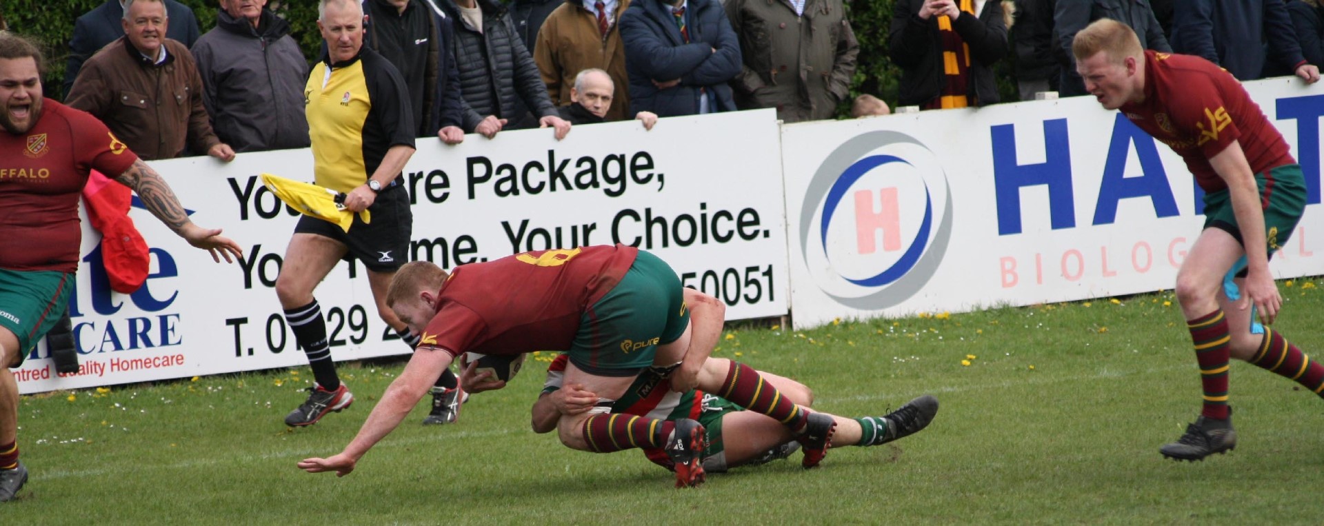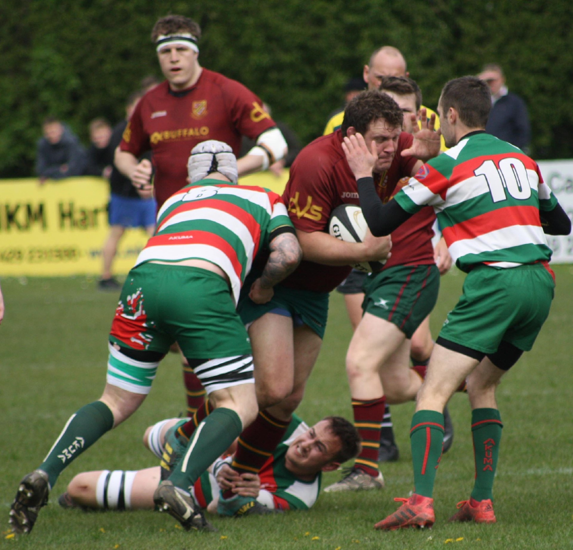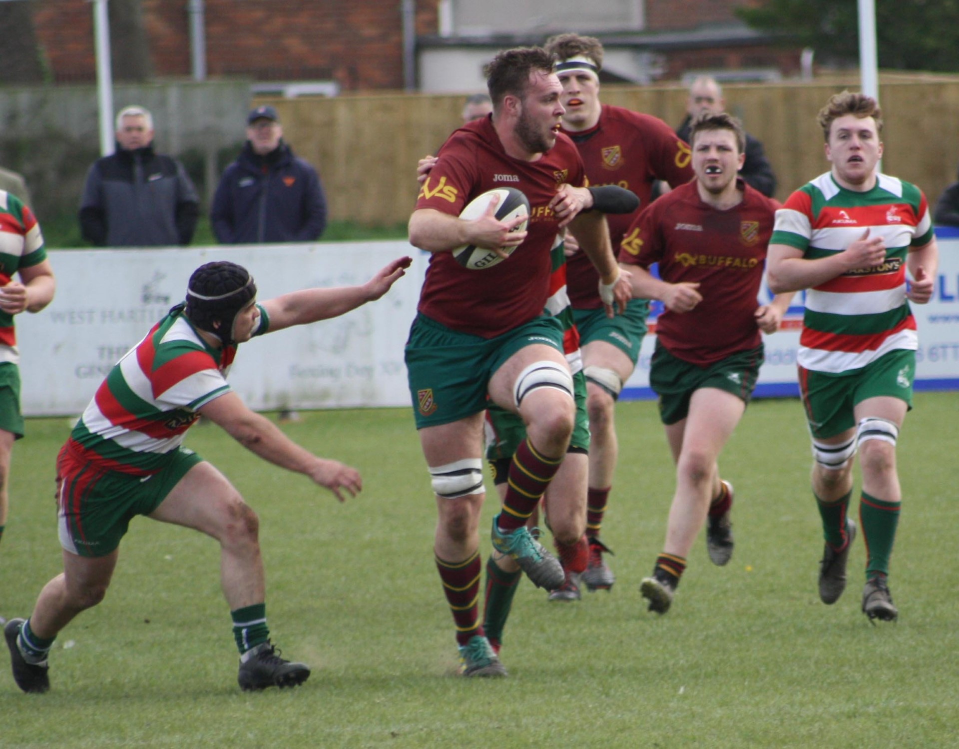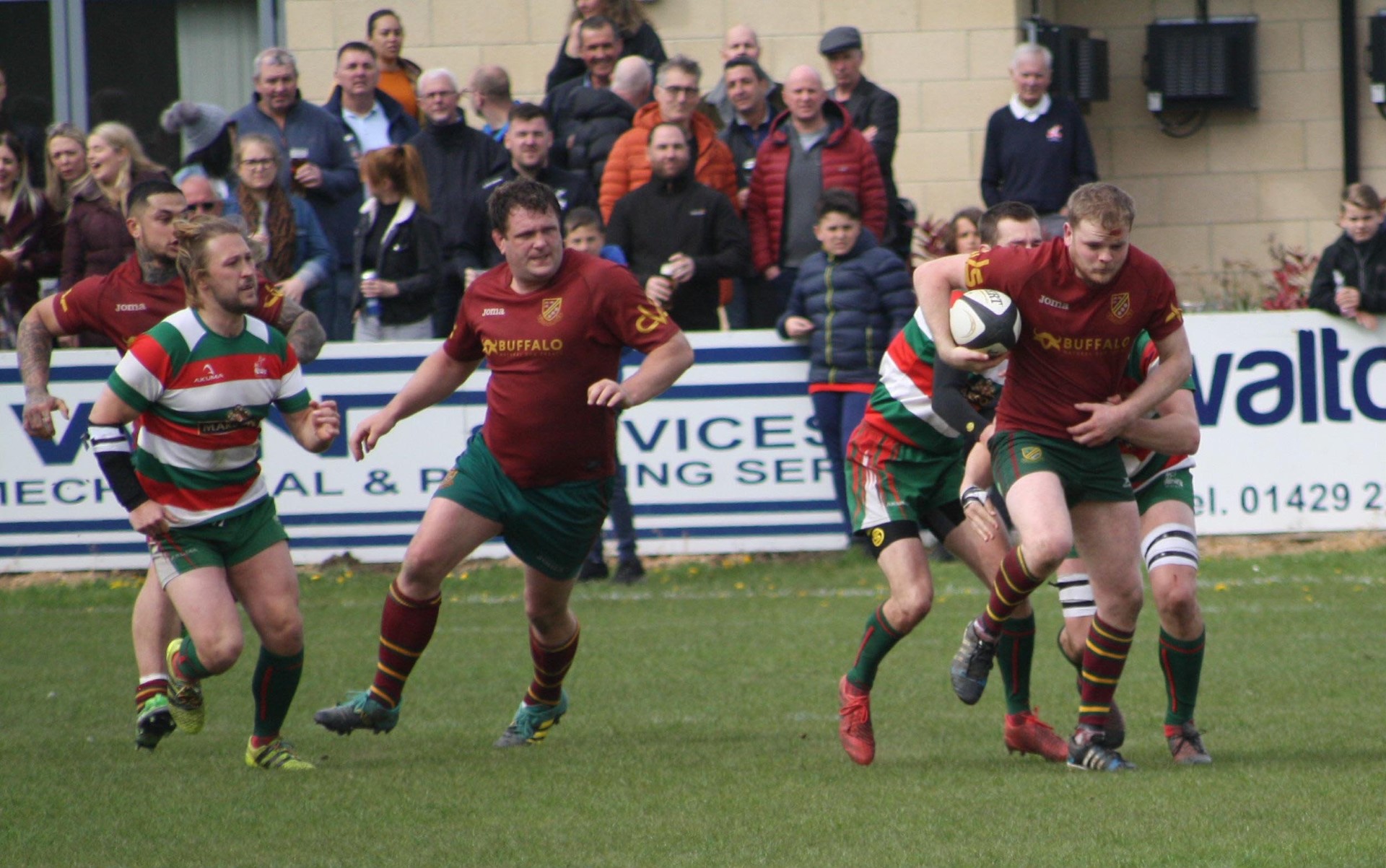 Heath made the journey to the North East to take on West Hartlepool with promotion to North 1 East at stake to the winners. Both teams had finished second in their relevant leagues and it was difficult to predict the winner but for the neutral, and for the large number of supporters who had travelled up the A1, there could only be one winner. Heath had tremendous, and very vocal support, and there was an expectancy from all as the boys in maroon entered the arena to the sound of trumpets, cymbols and cheering which created a superb atmosphere in what was going to be a tense and exciting game.
