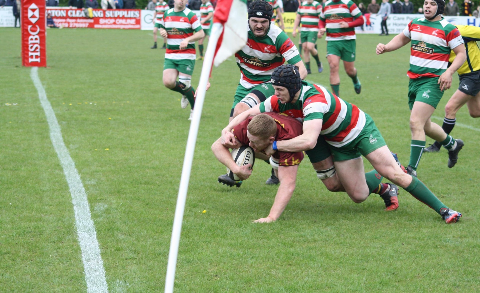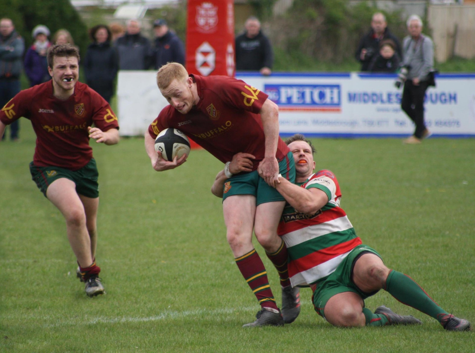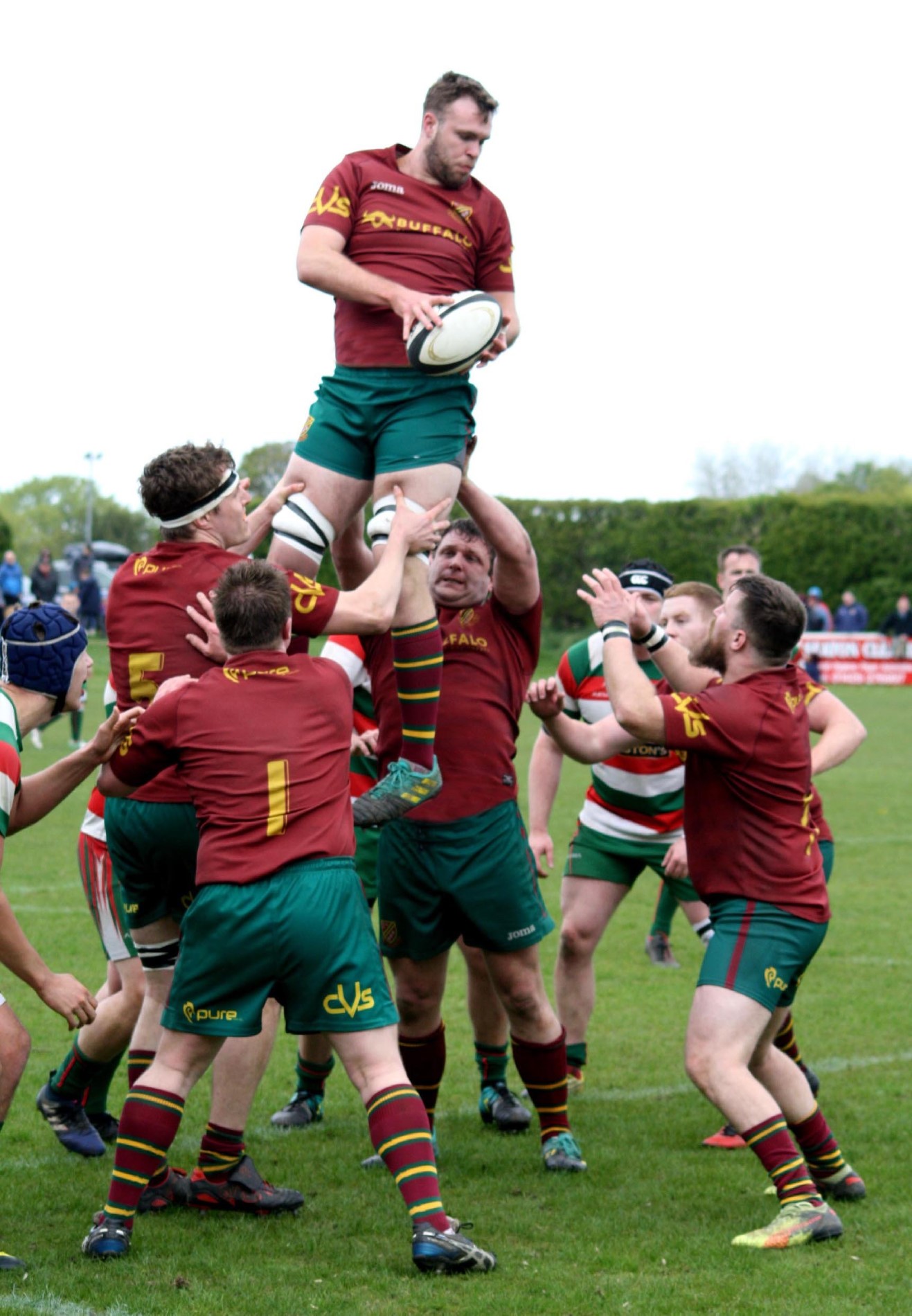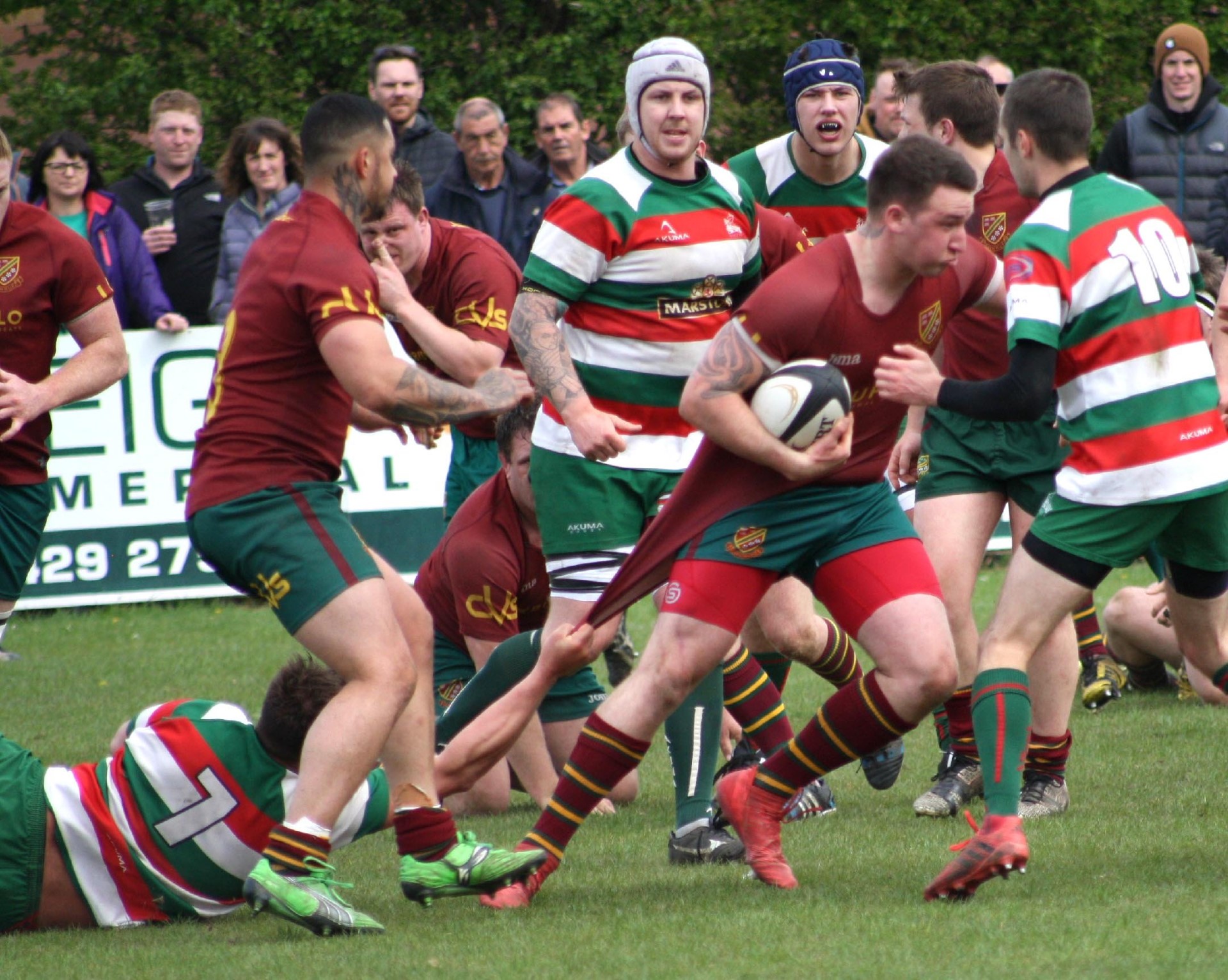 Heath made the journey to the North East to take on West Hartlepool with promotion to North 1 East at stake to the winners. Both teams had finished second in their relevant leagues and it was difficult to predict the winner but for the neutral, and for the large number of supporters who had travelled up the A1, there could only be one winner. Heath had tremendous, and very vocal support, and there was an expectancy from all as the boys in maroon entered the arena to the sound of trumpets, cymbols and cheering which created a superb atmosphere in what was going to be a tense and exciting game.