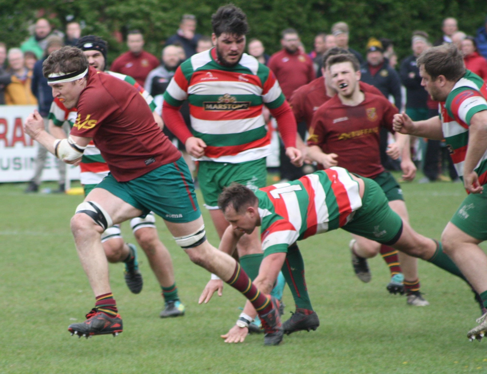 Heath kicked off with a swirling wind at their backs and immediately went on the attack. Dan Coles kick was deep into the home sides 22 and they had no option but to find touch. From the line-out Wests won the ball but Jason Merrie stole and set up a charge as the home defence was put under severe pressure. This pressure told and when Heath were awarded a penalty after 5 minutes Ezra Hinchliffe calmly slotted the ball between the posts and Heath led 3-0. Wests response was immediate as they stormed back scoring an unconverted try after 11 minutes to lead 5-3. The game was being played at a frantic pace and when Eddie Cartwright went on a run he was bundled into touch. From the line-out Heath put pressure on and were awarded another penalty which Hinchliffe converted and Heath regained the lead 6-5 with 15 minutes on the clock. What a start to the game which had become tenacious and ferocious as both teams battered each other to provide compelling viewing. On 20 minutes Heath increased their lead again with a third penalty from Hinchliffe and when Wests made a mistake on the half way line after 30 minutes Hinchliffe scooped up the ball and set off for the try-line. With the home defence closing in a slip pass to Dan Cole enabled him to run clear and go under the posts for a try, converted by Hinchliffe, and a score of 16-5 satisfied the Heath supporters as the Wests support looked shell shocked. Shortly after Matt Beasty was sin binned for a high tackle and this seemed to inspire Wests as they came back with a penalty conversion and just before half time a drop kick conversion and a score of 16-11 meant Wests were back in the game.