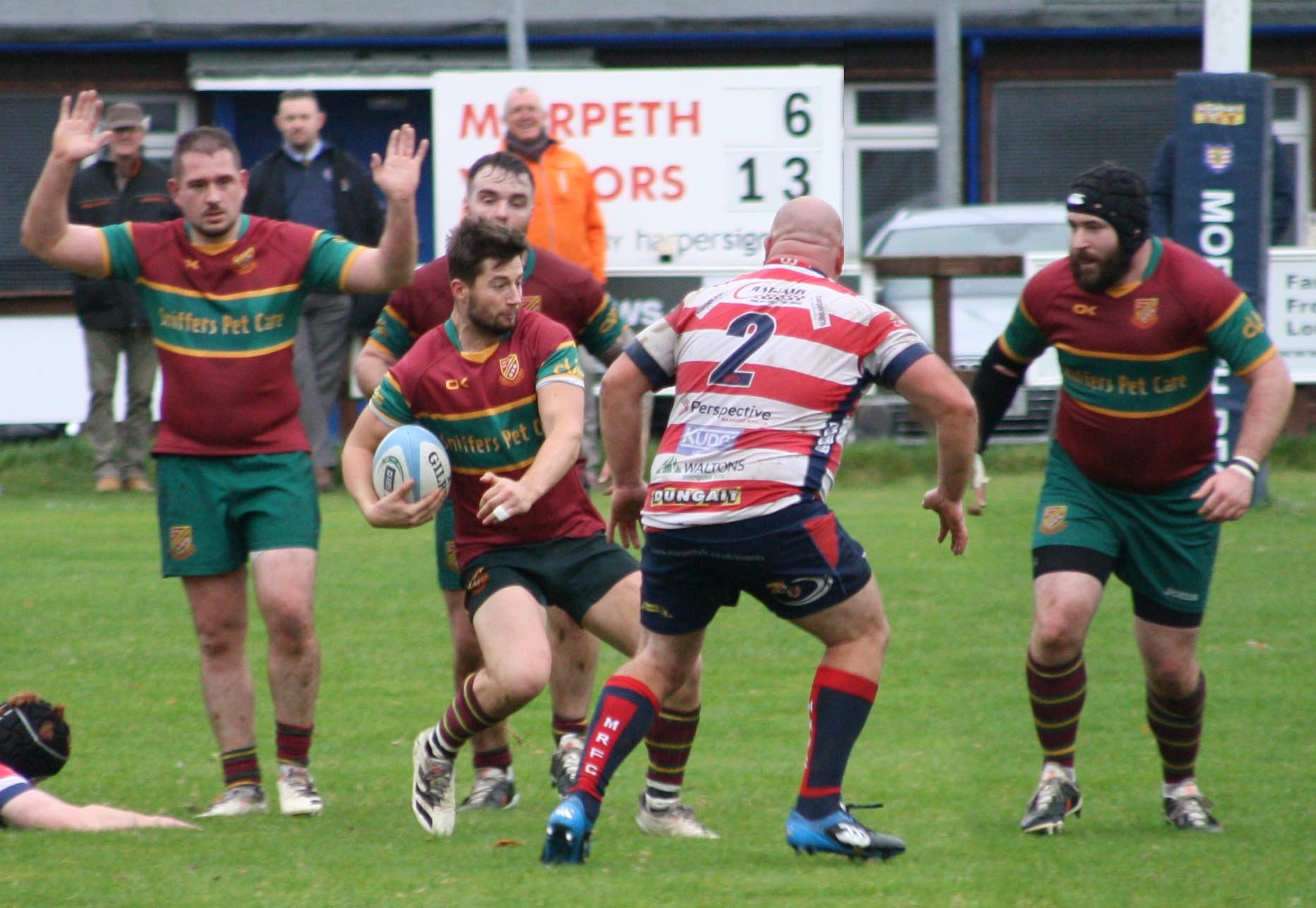 Olly Cook replaced Paul Turner at prop and he was immediately into the thick of the action driving towards the home try line before releasing Joe Morrison ,whose passed on to Callum Harriett-Brown before the winger was bundled into touch to prevent a certain try. Next up, Eddie Cartwright found touch with a clever kick and, after Saif Boussadda won the ball, Heath surged forwards the try line but Morpeth held firm.