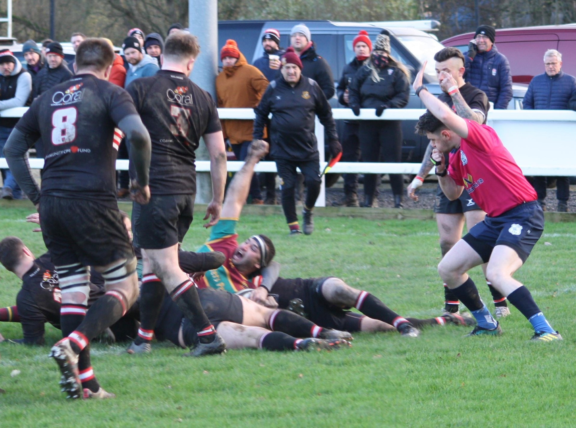 A response was needed from the home side and, following a clever kick from Oliver Scrimshaw, into the visitors 22, Ben Stringer charged down the attempted clearance and Heath were on the front foot. Next, a surging run from Tom Owen set up a chance and as Chris Moore, Paul Turner and Fergus Marsden made valuable yardage, it was left to Jack Pilcher to score the try, converted by Matt Hallett, and Heath led 7-5 with 12 minutes on the  clock.