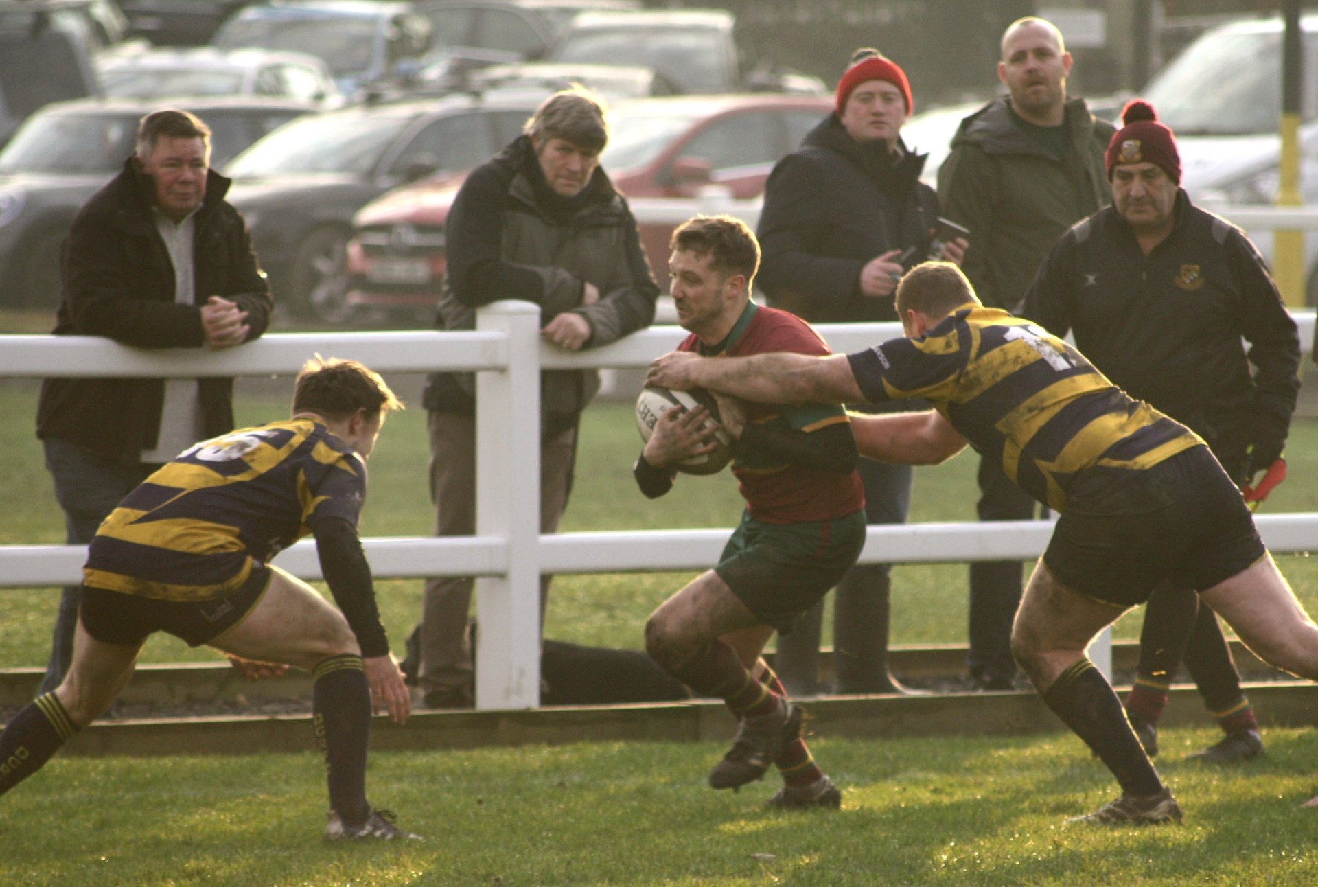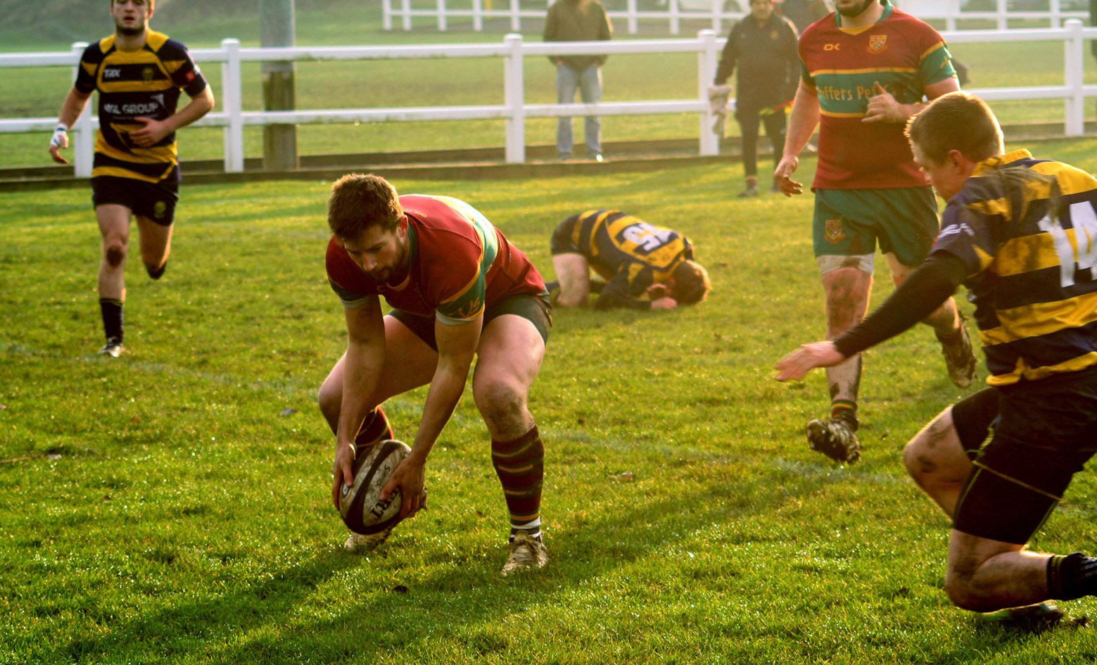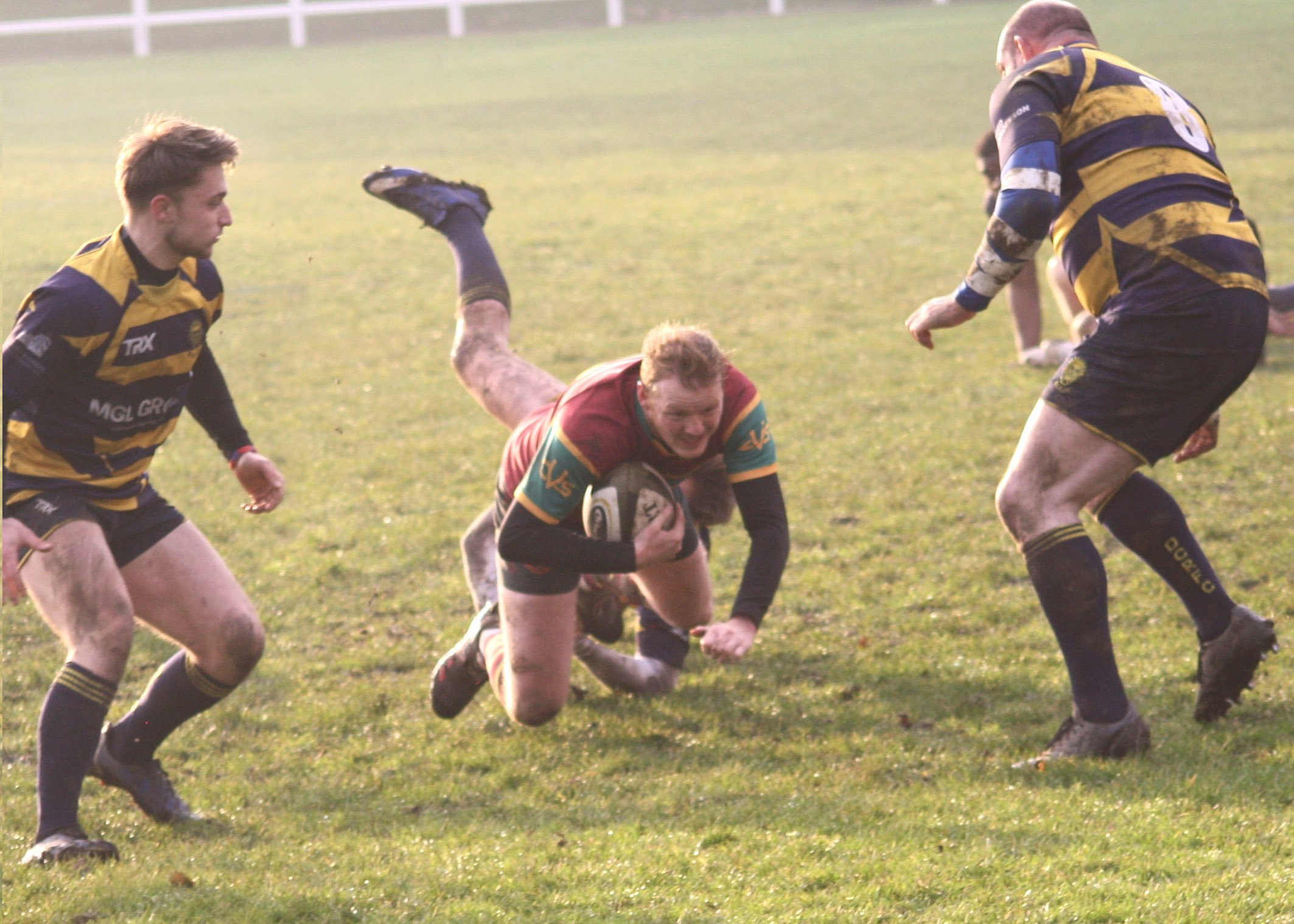 Durham arrived at North Dean for their first ever visit and as Heath kicked off playing towards the river end they immediately went on the attack with Heath caught on the back-foot. It came as no surprise to see them take advantage of some inept play by the home side converting two penalties to lead 6-0 with only 10 minutes played. Heath needed to respond and went in search of a score and on 17 minutes they were rewarded with a try when Gareth Hall slipped a pass to the supporting Eddie Cartwright. He was stopped just short of the line but the ball came out and further interchanges saw it eventually reach Callum Harriott-Brown and the wingman slotted home for a try in the corner and a score of 6-5.