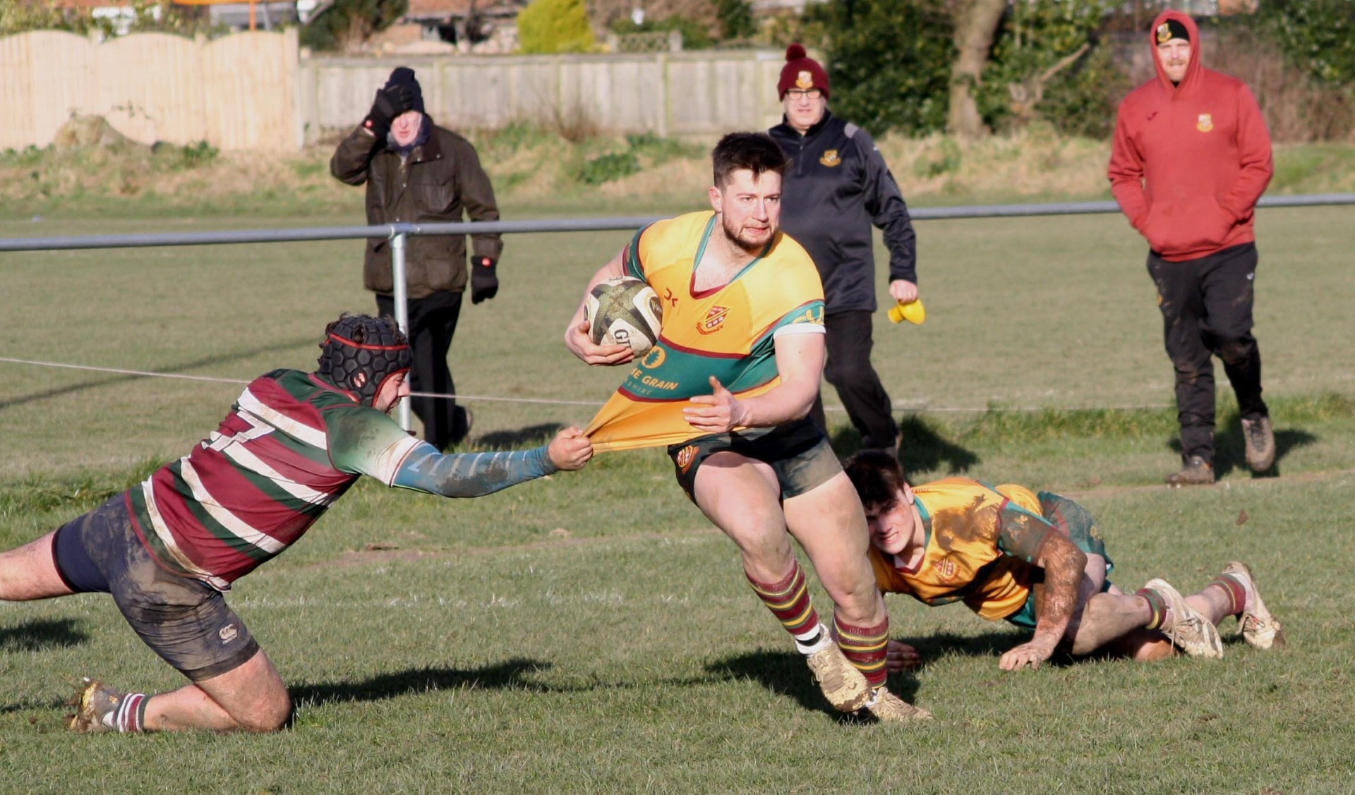 In blustery conditions Heath began the game playing into the wind and Moortown looked confident with ball in hand, but the first real clash saw Ben Stringer smash into a home player and the ball came loose. Strong runs from Tom Owen and Will McLaughlin saw Heath make good yardage and with clever back up from Dom Walsh and Joe Morrison, Stringer was on hand to charge over the line for a try and Heath led 5-0 with 4 minutes on the clock for the perfect start.