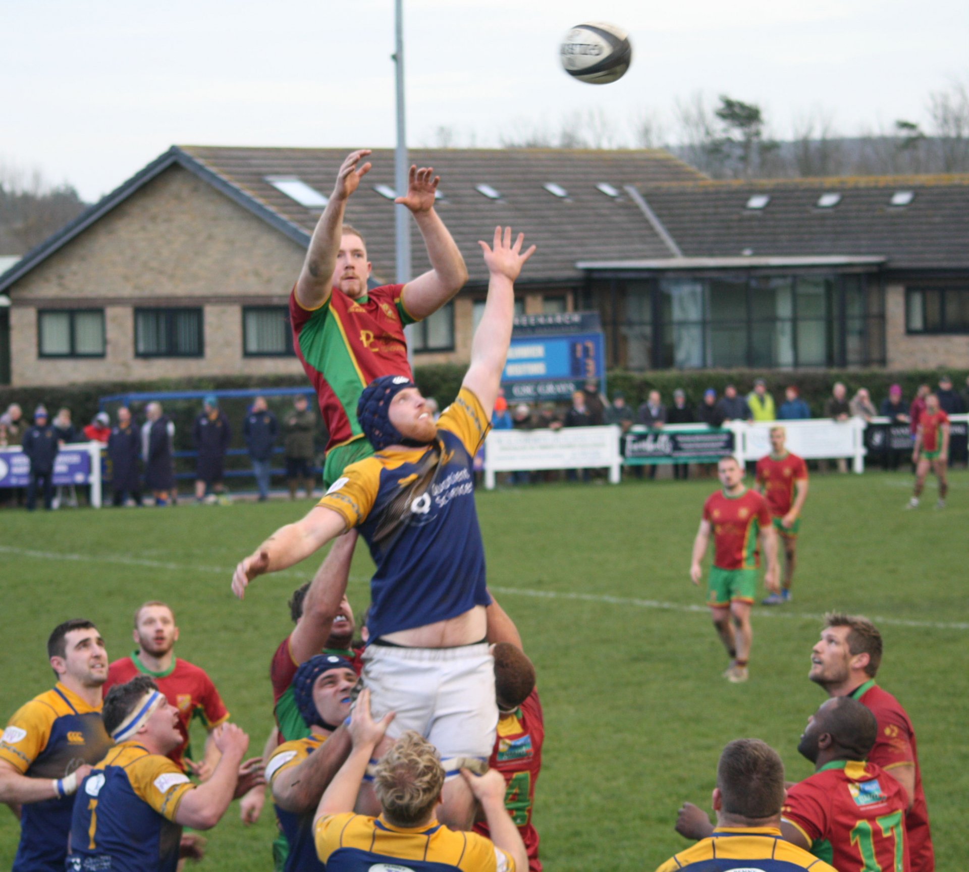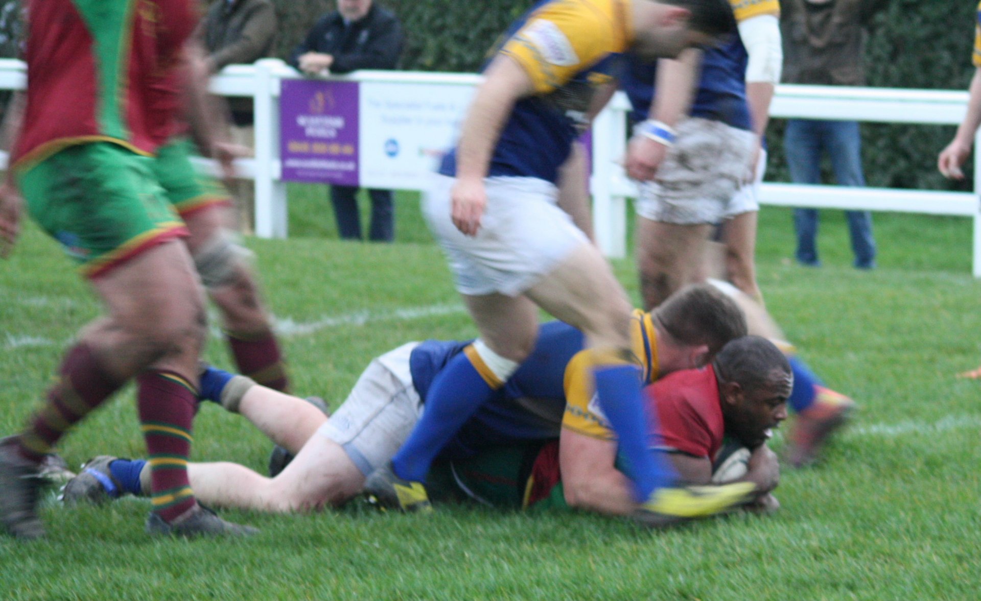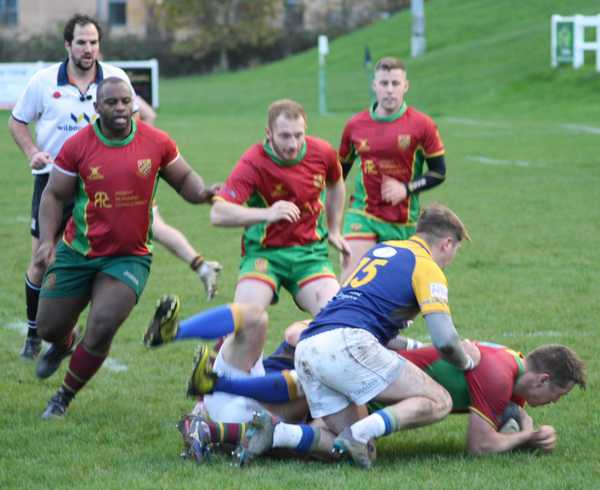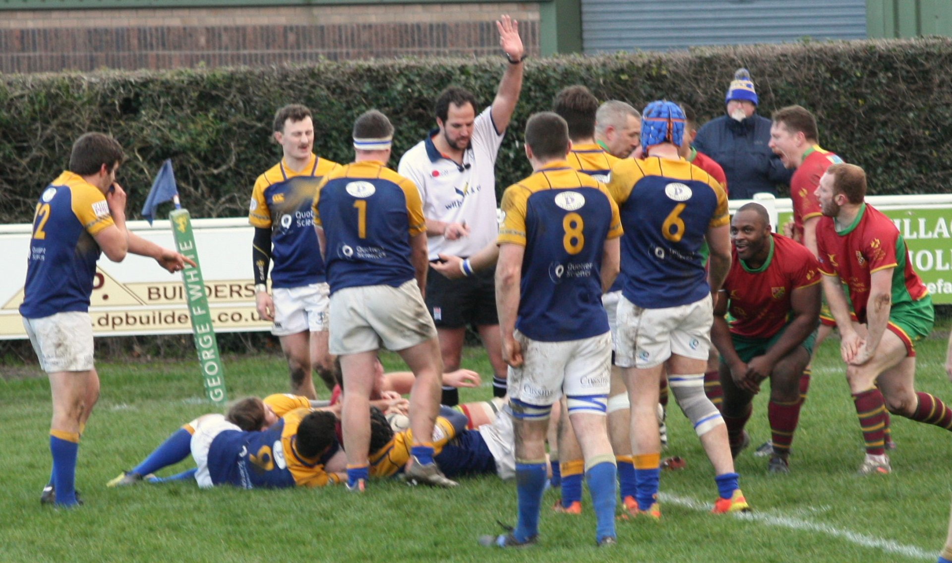 Heath continued to battle and were gradually clawing their way back into the game. Jack Pilcher was replaced by Elliott Knight and shortly after Tom Owen returned so Heath were back to full complement with little damage done. Heath began to press for a score and when Alex McFadden and Paul Turner linked up well the ball came out to Jason Merrie who drove into the home sides forwards. Next, Ben Stringer won line out ball and Tom Owen was on hand to drive forwards before Rondene Johnson swooped to pass the ball onto a rampaging Fergus Marsden who powered over the try-line for a try converted by Chris Johnson and Heath were back in the game 17-10 as half time approached.