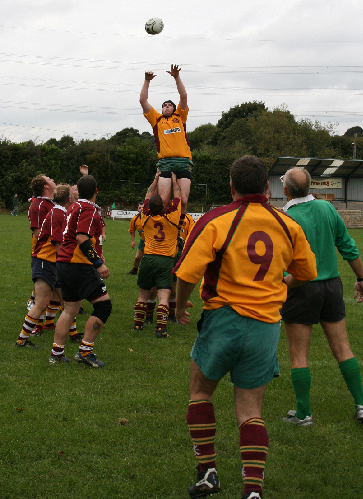 Shortly after the restart, Tom COLLINGE, was tackled and landed badly and had to be replaced by Richard SIMPSON, who was playing for the 3rd xv on the adjacent field. (Unfortunately, Tom had broken his collar bone and will be out of action for some time—our best wishes go with Tom for a speedy recovery). Heath kept up the pressure which was typified by a line out which was taken at the tail of the line out by wing forward, Mark MATTOCK, who made some 30 metres before offloading to the supporting David FREEMAN who made good ground. A knock-on in the backs then brought the move to an end.