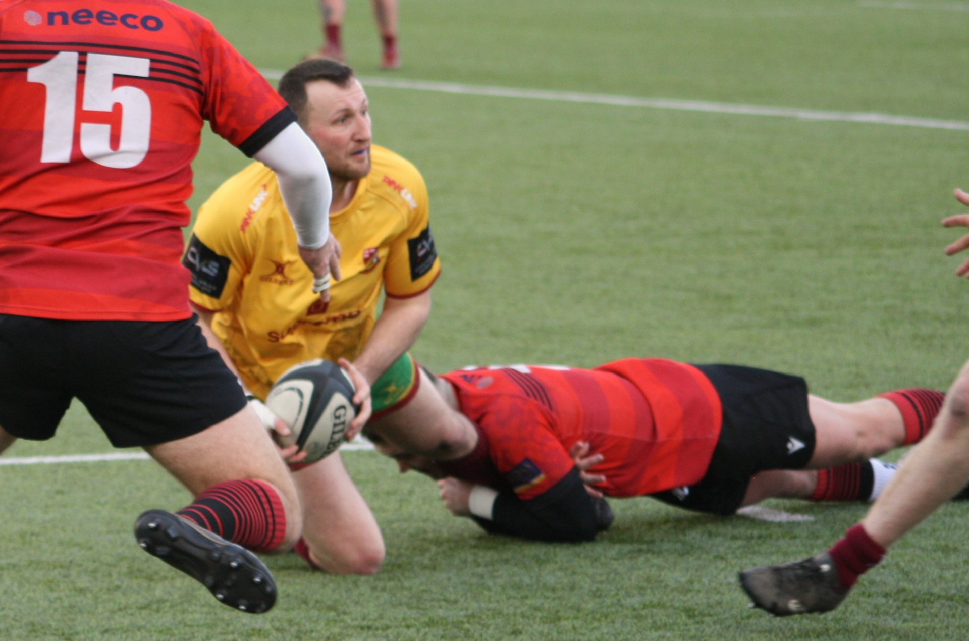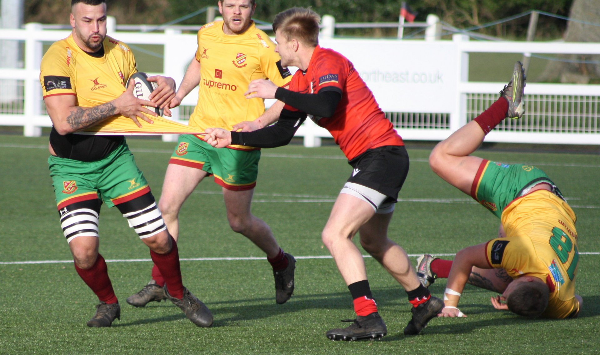 Heath continued with a superb break from Elliott Spiers who linked up with the supporting Ezra Hinchliffe but his final pass to Dom Walsh was short and a certain try was missed. Blaydon were struggling to contain Heath in the opening minutes but they were playing an open game and went in search of opening their account and it was the visitors who were now under the cosh. With fifteen minutes on the clock a loose Heath scrum saw Blaydon's Clarkson pounce, scooping up the ball and scoring a converted try and the scores were level.