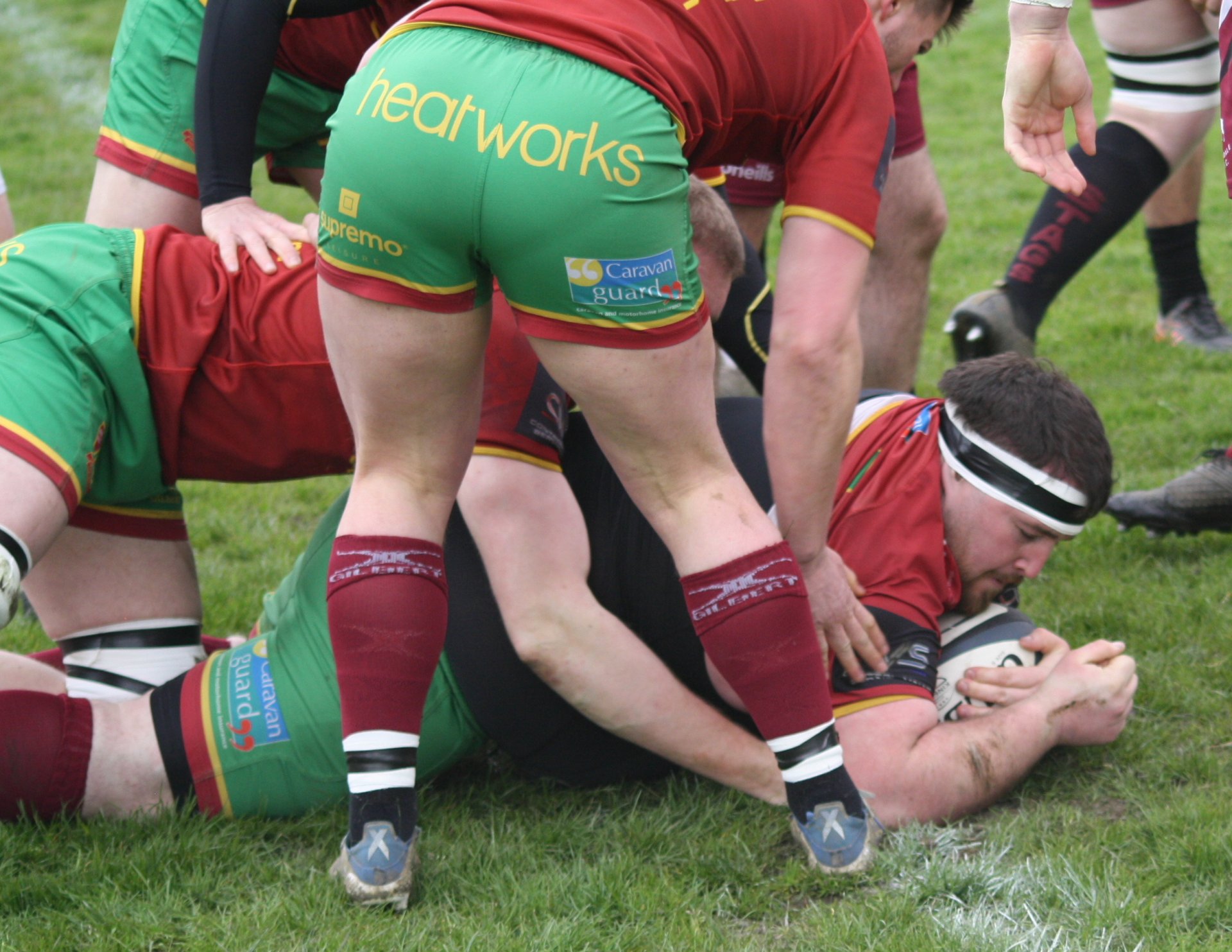 The visitors kicked off playing towards the Stainland Road end and from the start both sides were ready to battle, putting in some big hits. A superb 50-20 clearance from Dan Cole set up the first chance for Heath and when Ben Stringer soared high to collect line out ball the drive was on and up popped Jack Pilcher for the opening try, converted by Chris Johnson and Heath led 7-0 with only three minutes played.