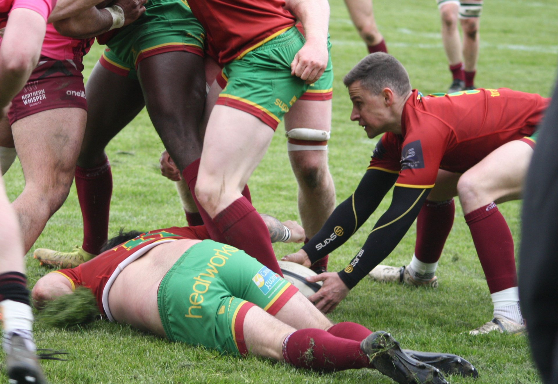 Cook returned for Josh Crickmay as the tension mounted and from the re-start Chris Johnson's clearance kick was charged down into touch. Seif Boussadda rose to collect the ball and Heath cleared their lines. Rossendale continued to go in search of a score - throwing the ball around to extend the home defence, but they could not find a way through. However, a break from the visitors saw a one on one with Dan Cole who put in a try saving tackle to prevent a certain score as the pressure mounted.
