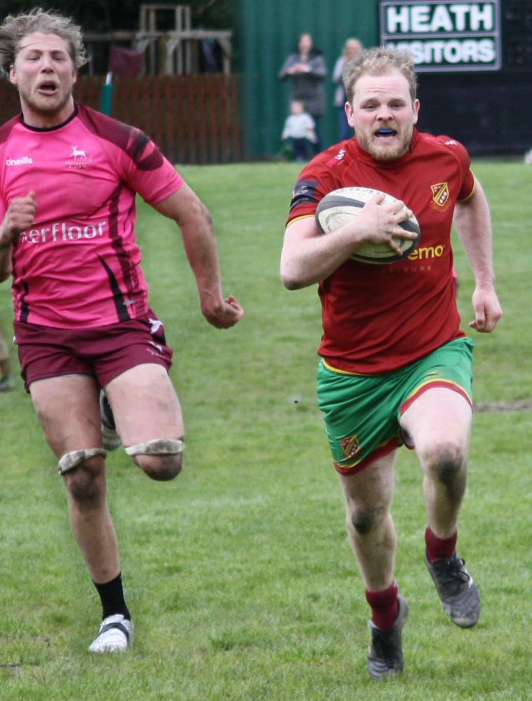 The crowd were enthralled by the battle with some massive hits from both sides. An opportunity for the visitors to take the lead came when they were awarded a penalty but it hit the post and the ball bounced clear, a let off for Heath with fifteen minutes played. However, Rossendale continued to batter the Heath defence and they were rewarded with a try in the corner from Lothian, converted by Allen and the visitors led 12-7 with a quarter of the game played.