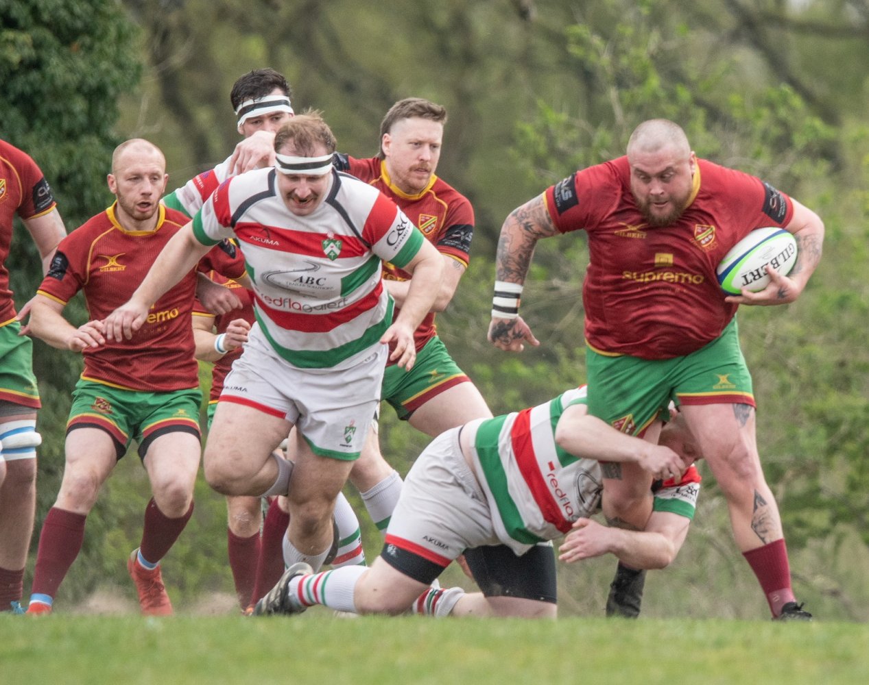 A mistake from the restart saw the first scum of the game and a barnstorming run from Harvey Keighley-Payne saw him held up - but the ball was spun across the Heath back line and, with some fabulous handling and off loads, Jake Haynes collected the final pass to score a converted try, 21-7. Heath were now playing with confidence and were prepared to throw the ball around. Following a good run from Elliott Knight he was tackled short of the line but Seif Boussadda was on hand to collect the ball before releasing the supporting Ben Stringer who went over for his second try of the game, converted by Chris Johnson, 28-7, with twenty-five minutes on the clock.
