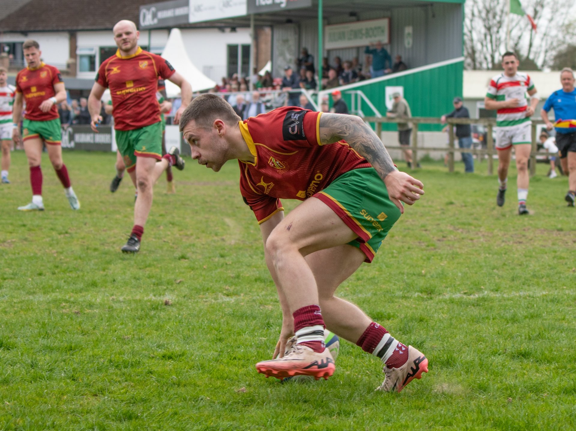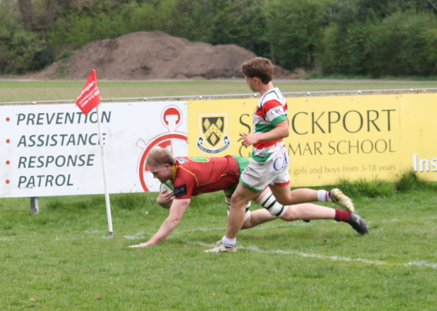 A large crowd had gathered for the game with the usual hard core supporters from Heath mingled in amongst. Stockport kicked off and had an immediate impact scoring a converted try in the opening minutes following several missed tackles from Heath, 7-0.