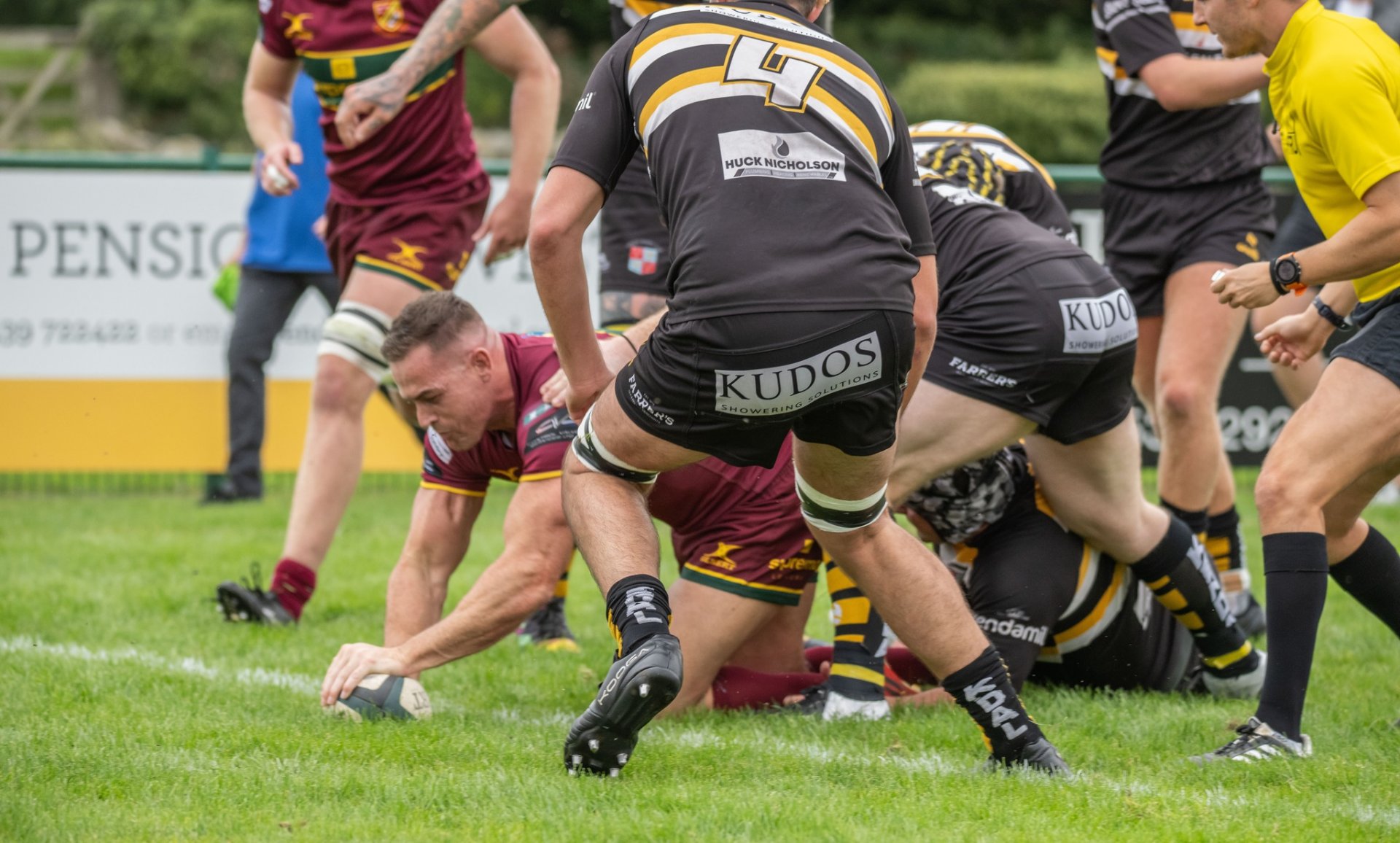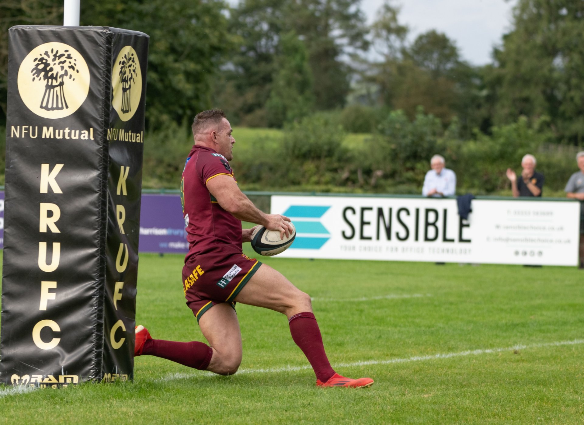 From the re-start Tom Clough set off on a driving sixty metre run which ended with Kendal having a man carded and, as the hosts struggled to contain Heath, Clough collected the ball on the half way line and set of on another charge - with a jinking kick and chase before collecting the favourable bounce to score under the posts, 35-18, with a quarter of the game left to play.