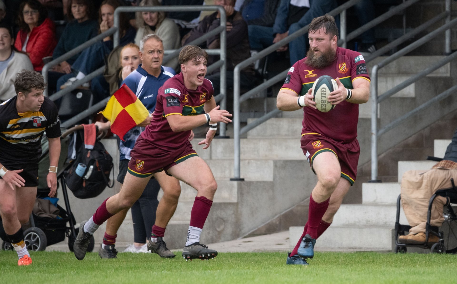 Kendal were gaining in confidence and a super kick to touch set up their next attack but the Heath defence stole the ball and went on the attack themselves with Tom Clough, Jake Haynes and Sam Cox linking well to set up a scoring opportunity for the visitors. Kendal responded and when Cox was yellow carded on thirty minutes they took advantage, scoring a converted try from the quickly taken penalty to level the scores 15-15.