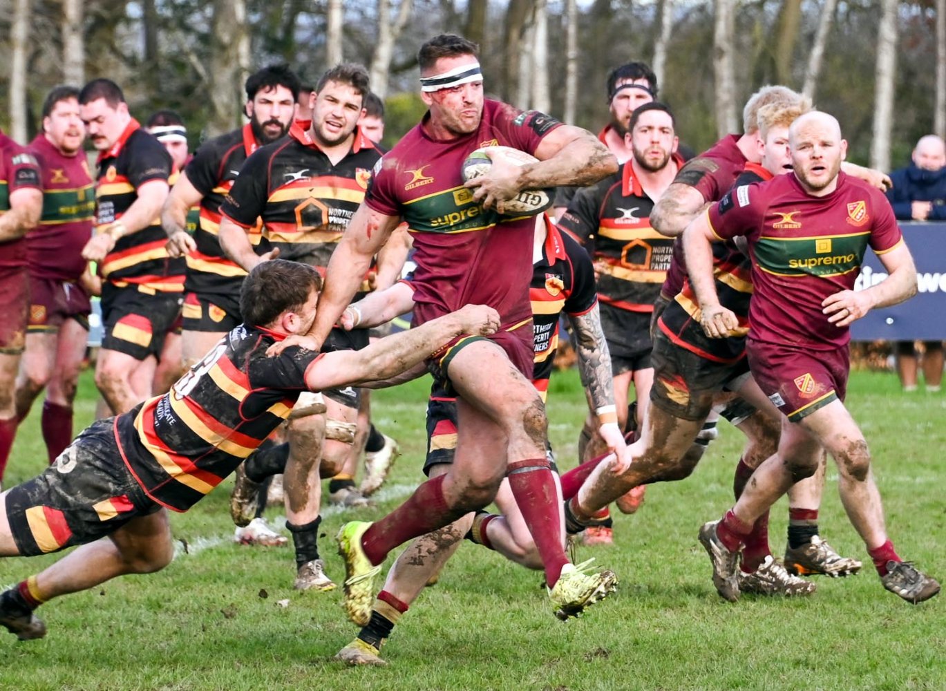 Chris Johnson kicked off deep and a mistake by Harrogate saw a scrum. The ball was won and two further penalties from Harrogate enabled Heath to get control of the ball. From another scrum Tom Clough powered over for a try, converted by Johnson, 22-21 with forty-two minutes played. Heath had all guns blazing as Harrogate could not deal with the onslaught and five minutes later Tom Clough added his second try, again converted by Johnson and Heath led 22-28.