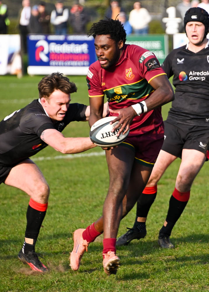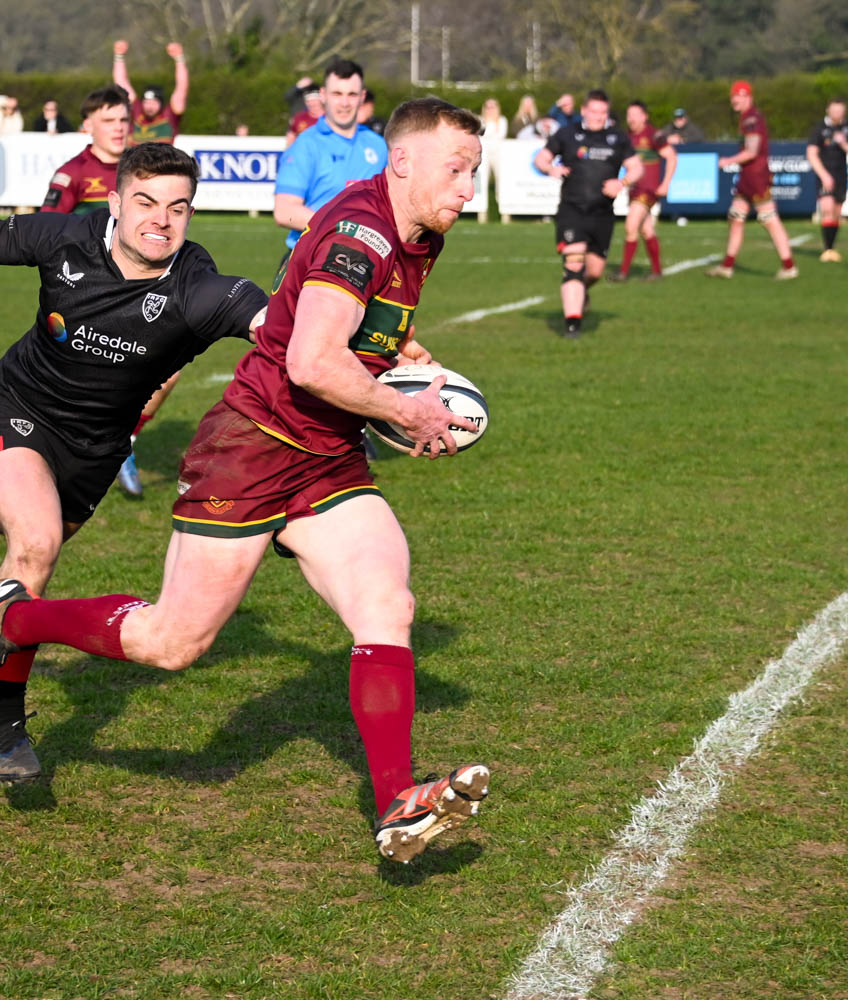 Back came the home side, looking for a score and they were rewarded with a try in the corner, 27-40, after the conversion hit the post and bounced clear. Ilkley continued to mount attacks and Callum Harriott-Brown saved a certain try with a last-ditch tackle. When Chris Moore received a yellow and with Tom Clough and Josh Beck coming off, Heath were hanging on.