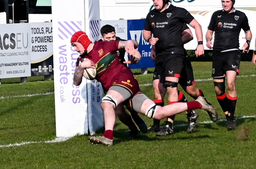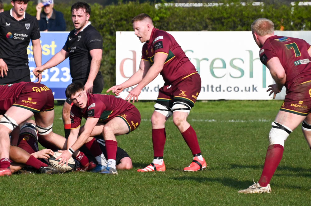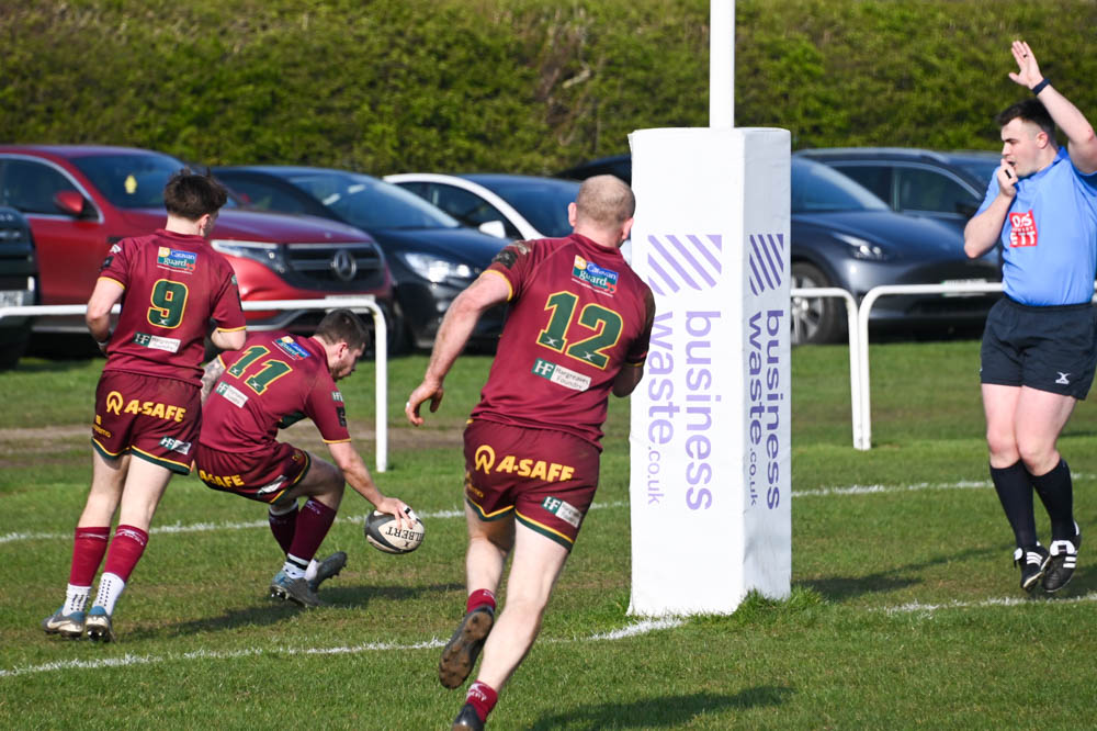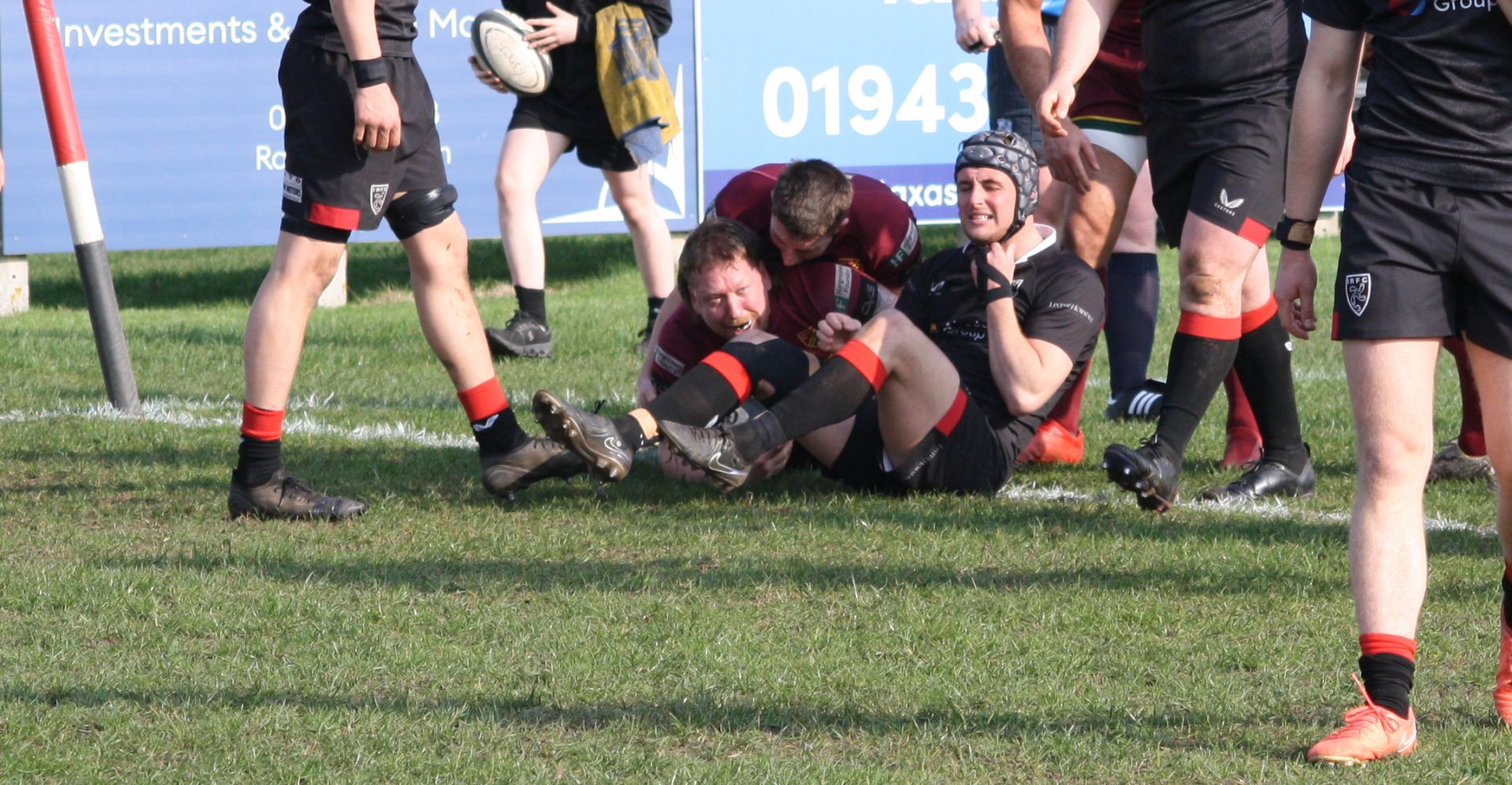 Conditions were ideal, with bright sunshine, as both teams entered the field and a large crowd had gathered with many Heath supporters travelling over to swell it. Ilkley kicked off with Heath playing towards the cricket ground end and they quickly made inroads into the home defence looking for an early score. A huge kick from Chris Johnson found touch in the corner and this was a first opportunity. Line out ball was secured and with the home side struggling, giving away two quick penalties which resulted in a player yellow carded, Heath took advantage as Alex McFadden powered over for the opening try, 0-5 with eight minutes on the clock.