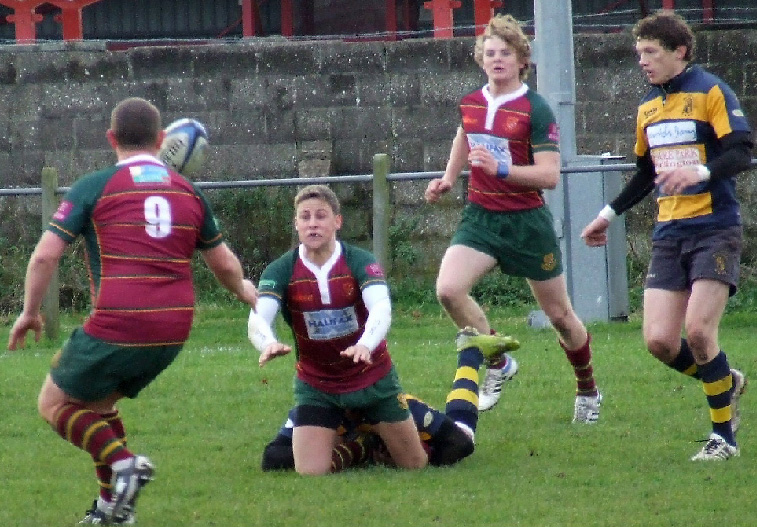 The scrappy game came to life with Heath attacking in the final quarter. Hetherington picked up a loose ball and set off on another mazy run to go over; Hinchliffe converting and bringing the score on to 20 points to 17. But Brid’ bounced back with a surging attack, initially stopped by a great tackle from Walsh, but scrum-half Robinson went over for a converted try and a score of 27 – 17.