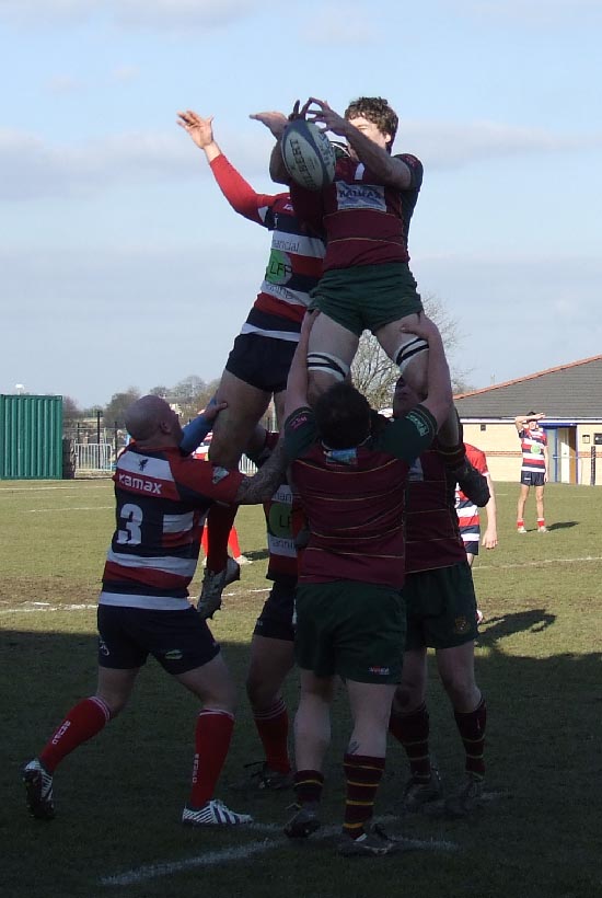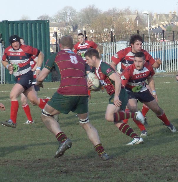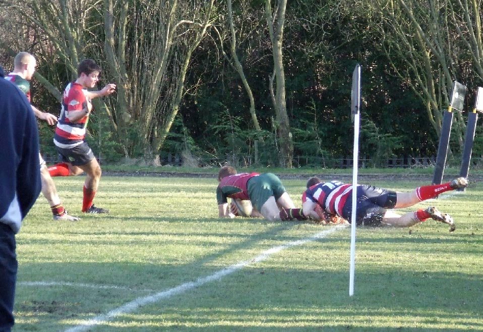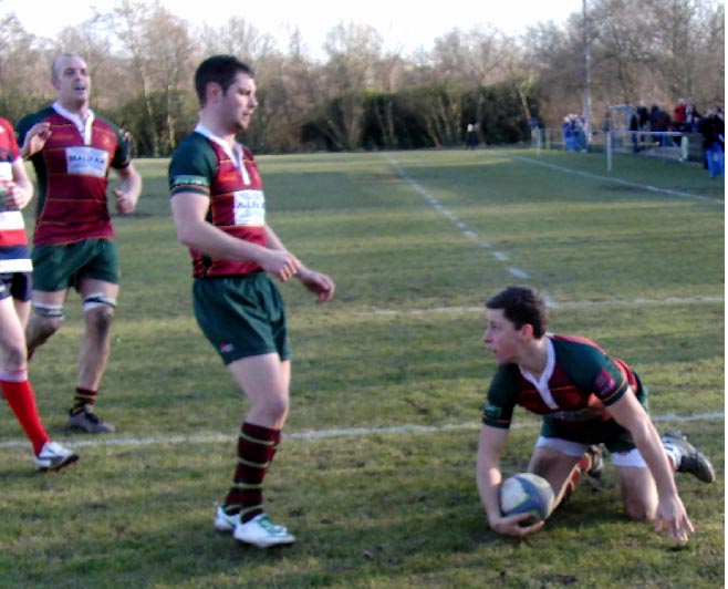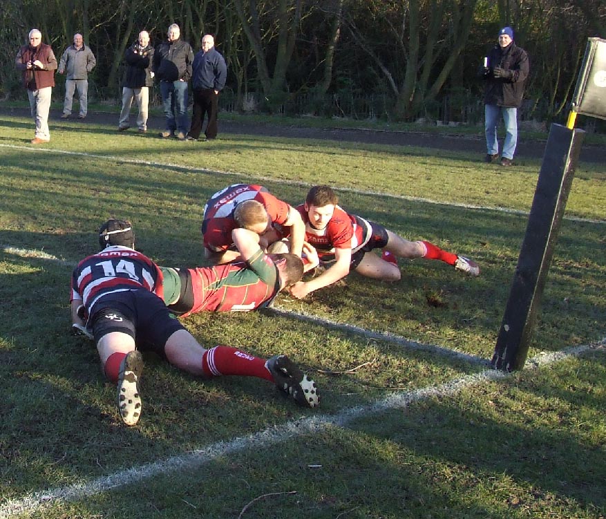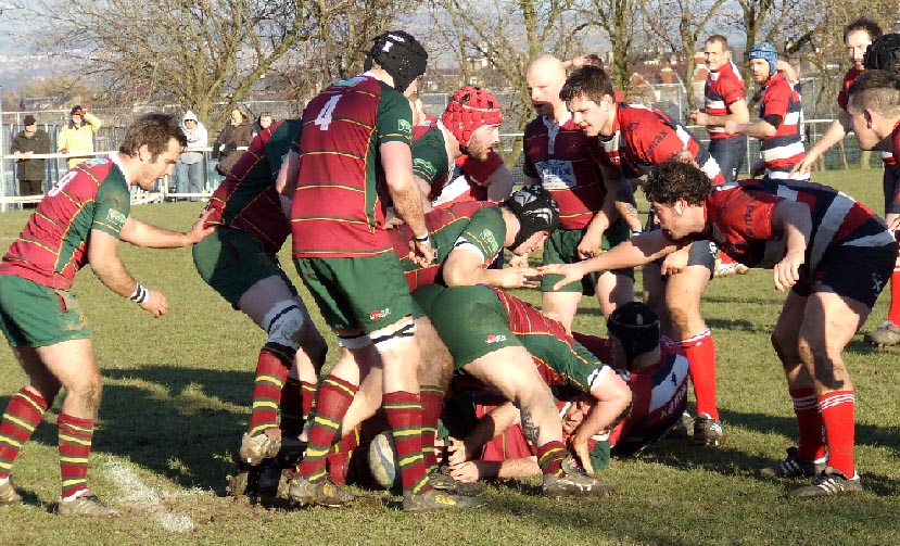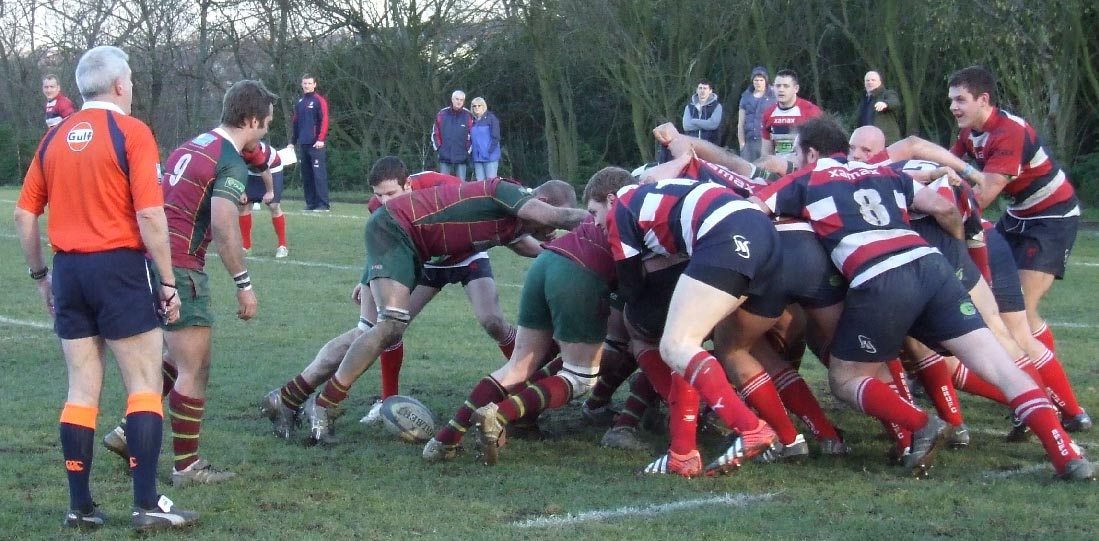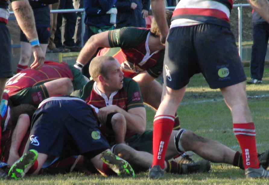 The hosts kicked off and Ian Downsborough collected. After a couple phases came the first scrum, where the Heath boys set their mark and in which they would totally dominate all afternoon. The ball was quickly moved down the line, where Sheldrake fed Pollard who made ground before chipping over the remaining defenders, only to see his chase thwarted by the dead ball line. The band of travelling supporters looked to this as a sign of things to come, but were only partially rewarded in this regard.