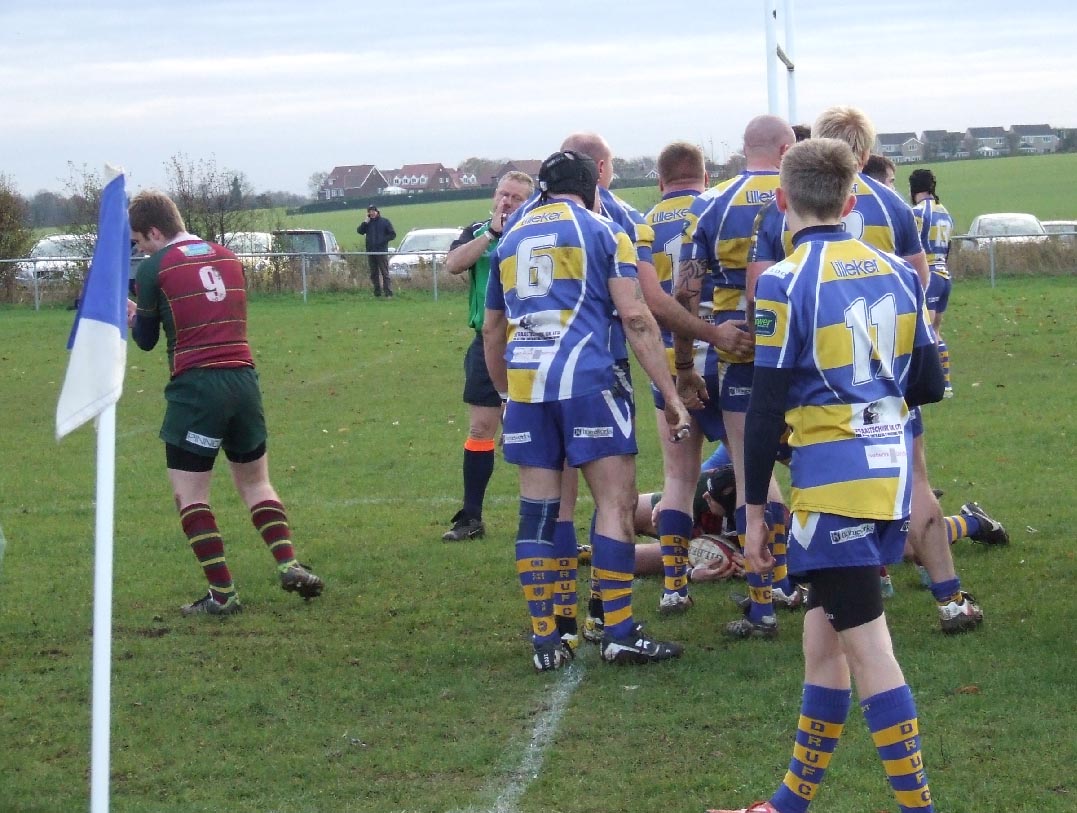 Peter Birkett, Stephen Hare and Pratt took play into the Dinnington 22m area but the home team cleared, only to concede a free kick from which Hinchliffe put Heath into a strong position near the corner flag. Dinnington ran the ball out of defence to threaten Heath’s tryline but Ramsden’s magnificent 45m clearance found touch near the half way line.