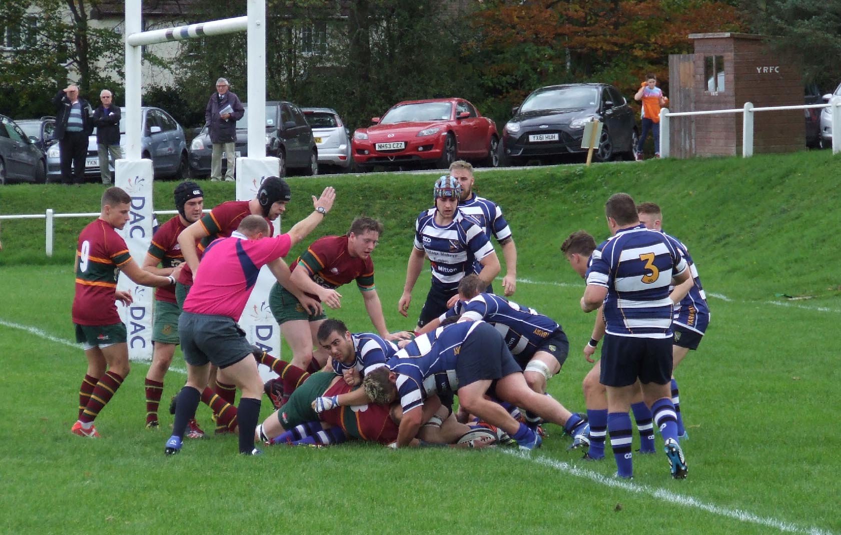 In superb, sunny conditions Yarnbury kicked off down the slope. In the opening minutes Heath settled straight into their game plan and put Yarnbury under pressure. From a lineout, Darren Neilly went close before Eddie Cartwright went nearer before being put into touch and relentless pressure eventually had Yarnbury caught offside. Ezra Hinchliffe had a simple conversion: 0 – 3 after mins. This seemed to spur the home side into action and it was Heath’s turn to suffer.