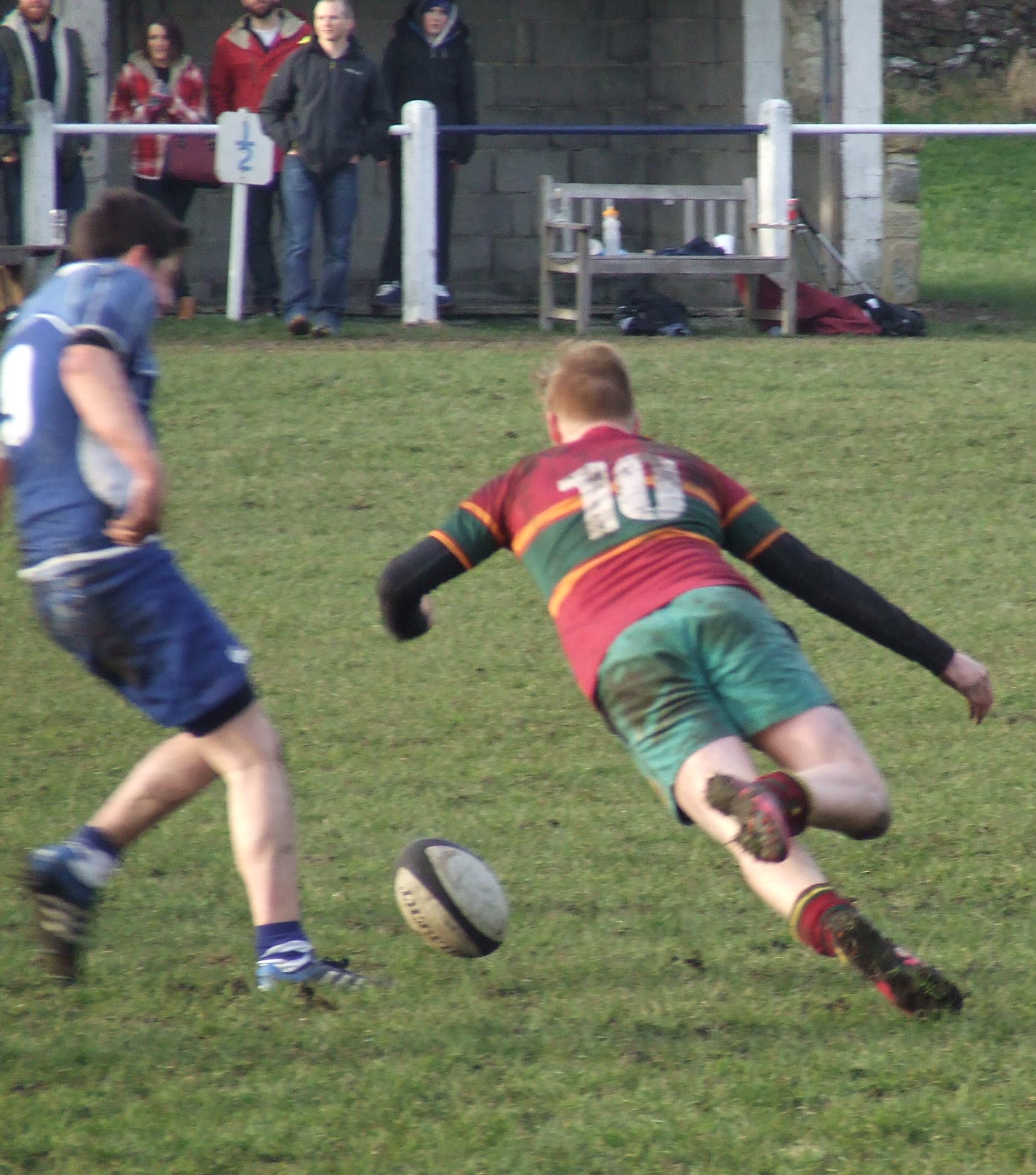Heath travelled with only sixteen players and arrived late so pre match preparations were difficult and this showed as they were down by 10 points in the first 10 minutes through a penalty and converted try as they made elementary mistakes in vital areas. The visitors tried hard to get organised with Ezra Hinchliffe, who started at inside centre, prominent and Andy Piper and Fergus Marsden making strong runs. Jacob Storey saved a certain try for the home side after 15 minutes but with Heath players all over the place Ribb had the simplest of tries on 17 minutes to lead 17-0.