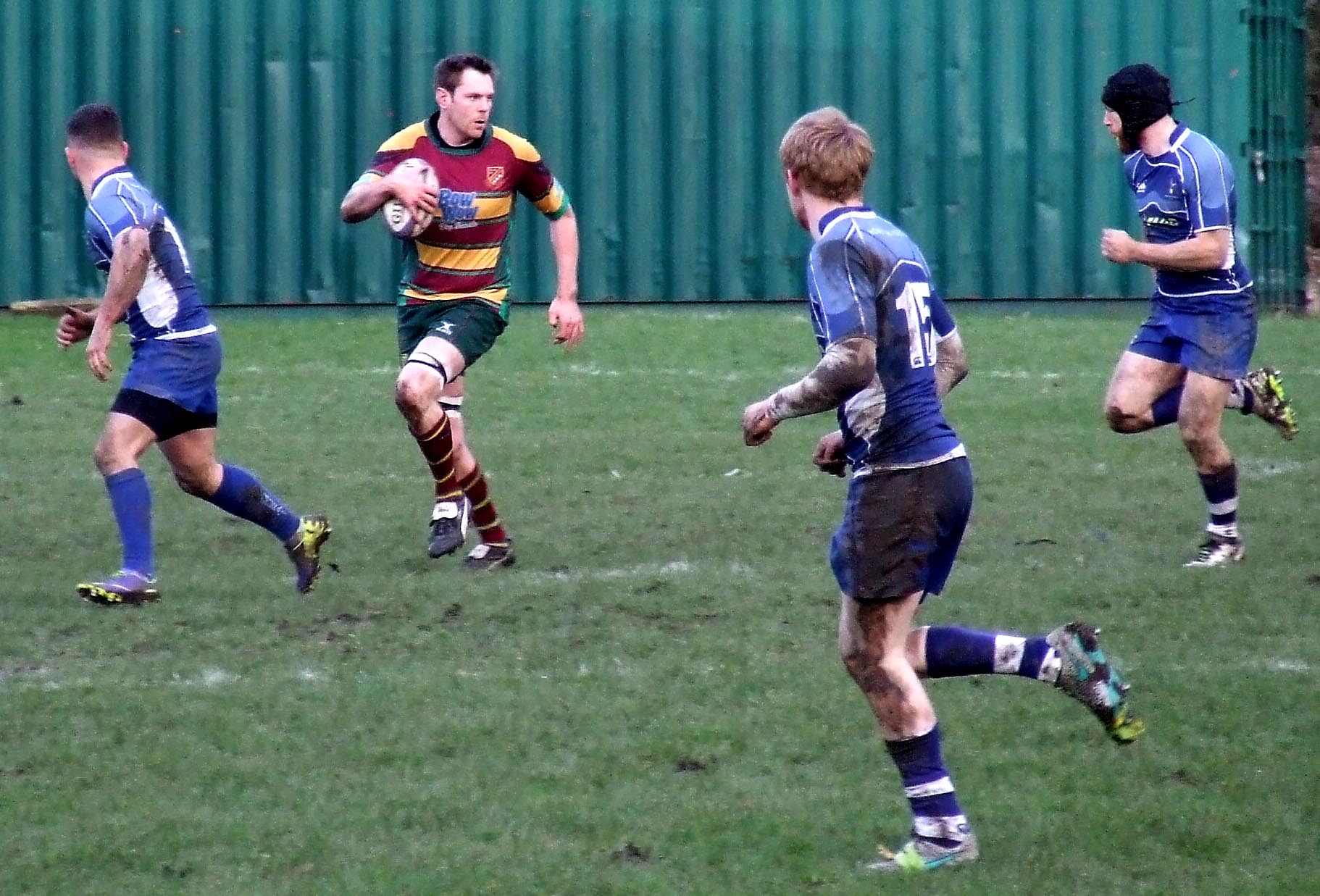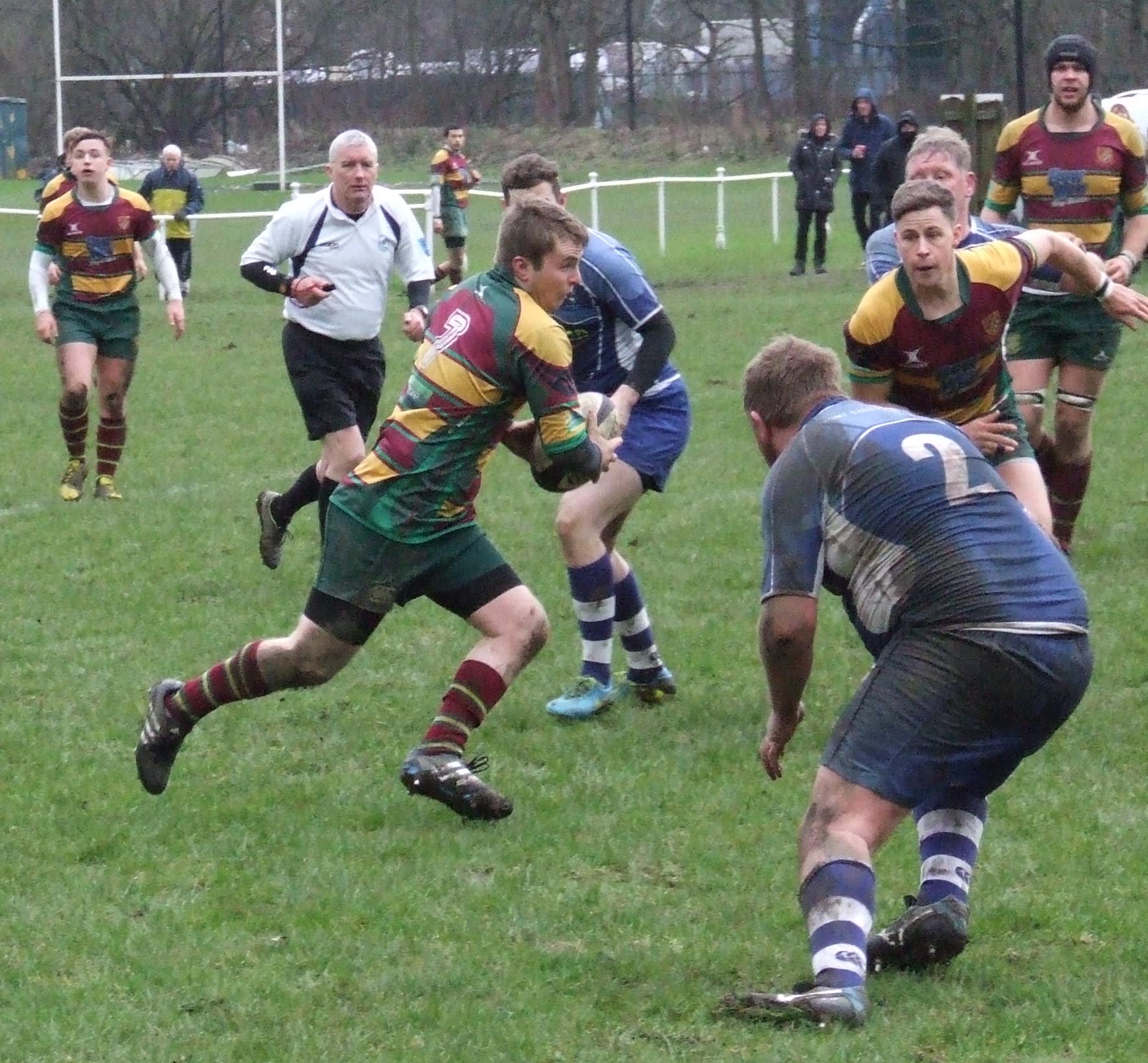 Heath attacked again, featuring Hinchliffe, Daz Neilly, Alex McFadden and Matt Baxendale before the move broke down. Ribb were caught offside again and Hinchliffe’s goal-kick was successful: 3 – 3 on 19 mins. Ribb broke free on 23 mins and spent the next 5 mins encamped in the Heath 22 but the home defence was solid until a massive punt from Hinchliffe relieved the pressure, taking play up to the half way line for a lineout.