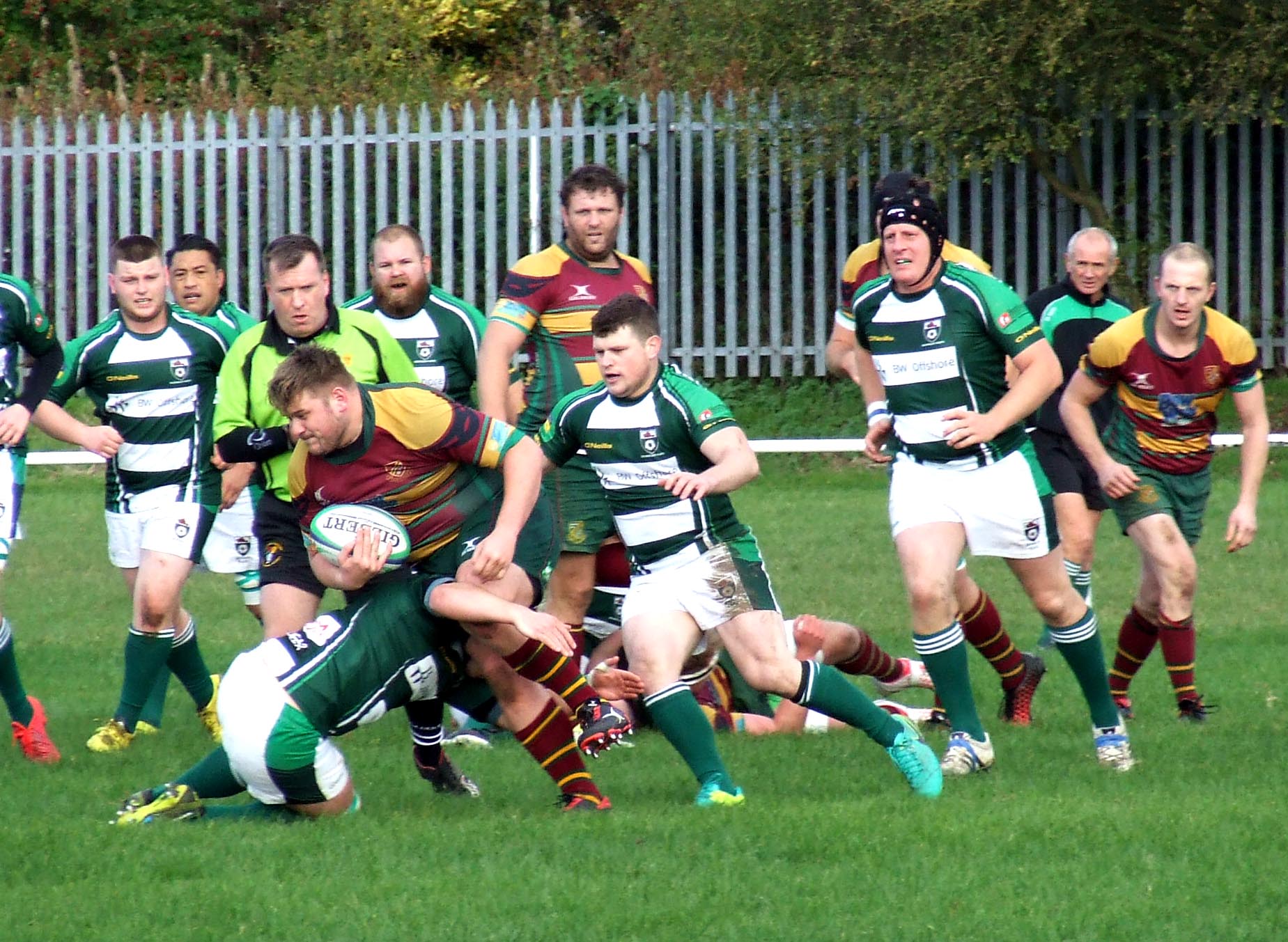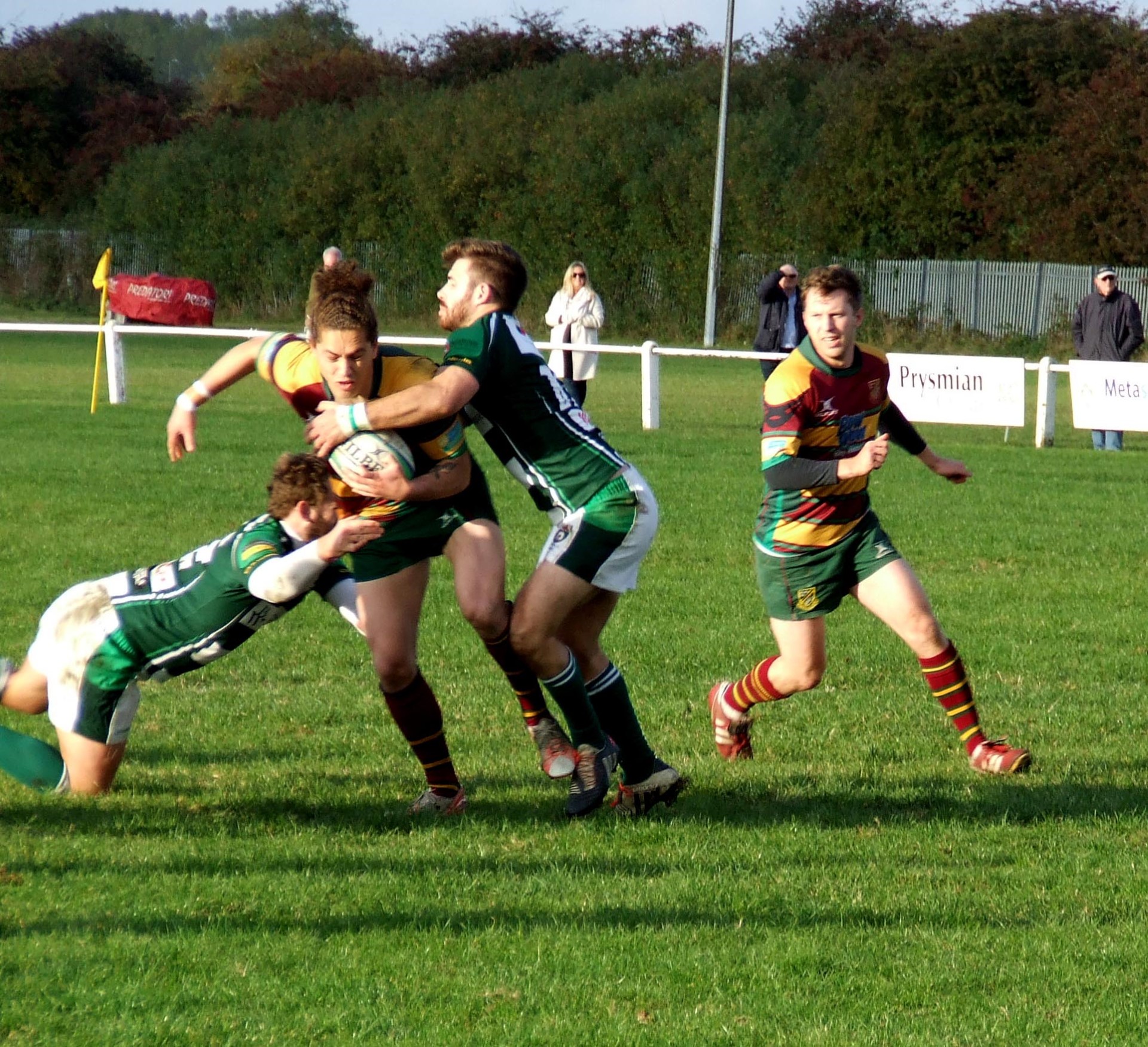 Matt Beasty won lineout ball and good work from the pack enabled Ezra Hinchliffe to kick for position – touch on the Beverley 22 metre line 5 minutes into the game. The Heath pack was in complete control with No.8 Richard Brown close to scoring a try and a Beverley prop getting sin-binned. Chris Moore was next to be held, just short of a try, as the hosts tackled brilliantly under the severe pressure. On 15 mins, Hinchliffe converted a penalty to reduce the deficit: 7 – 3.