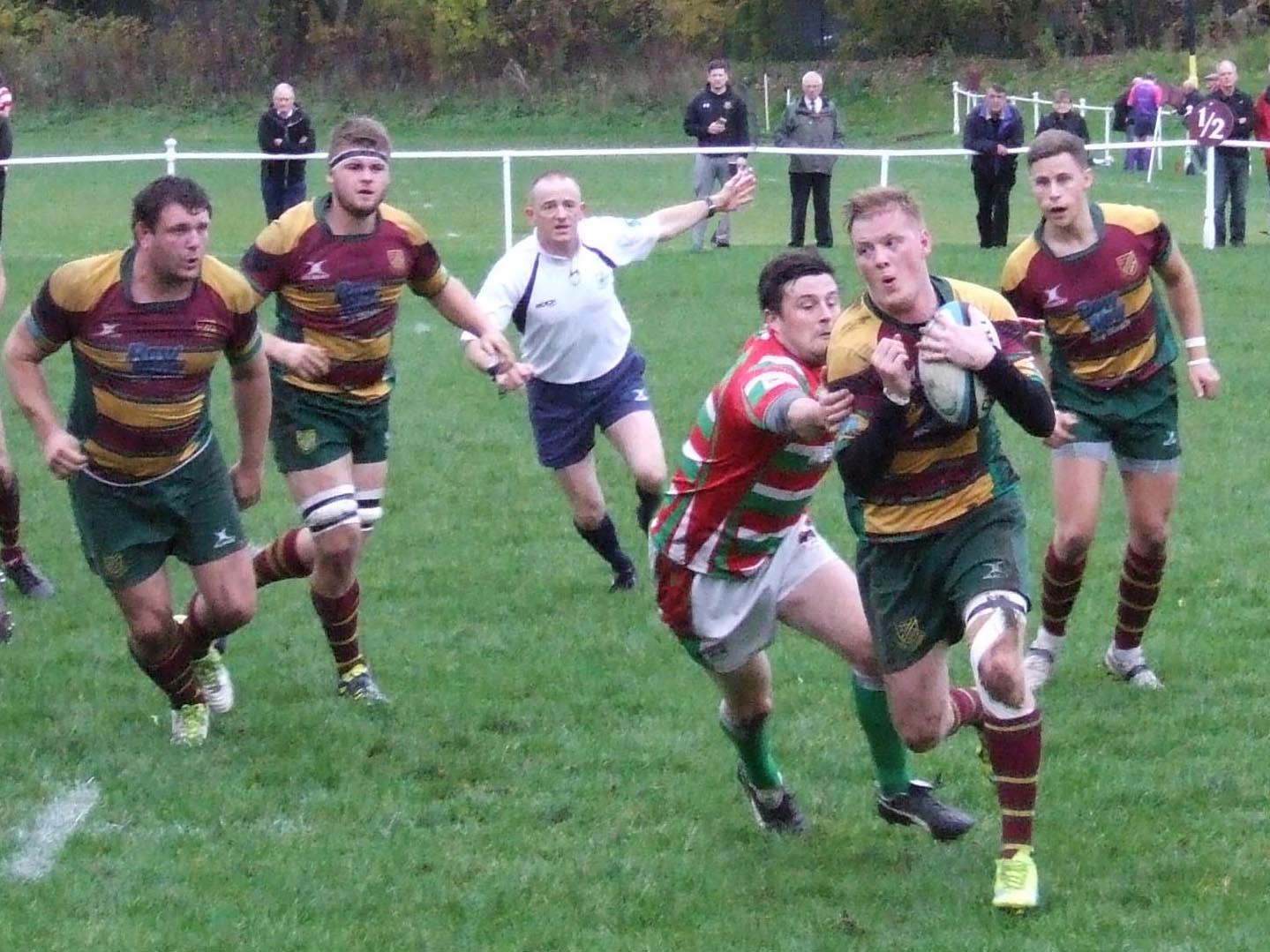 Heath substituted Cook and Matt Beasty with McFadden and Hunter. The home team kicked off and soon Hinchliffe attempted a dropped goal but the kick went wide. For 10 mins play was even with Heath’s forwards in control and the team playing good rugby. Dom Walsh and Cartwright were linking well with Jordan Bradbrook coming into the line from fullback. Howard Hanks was having a sound game at flanker with Heath on a high and looking for a score.