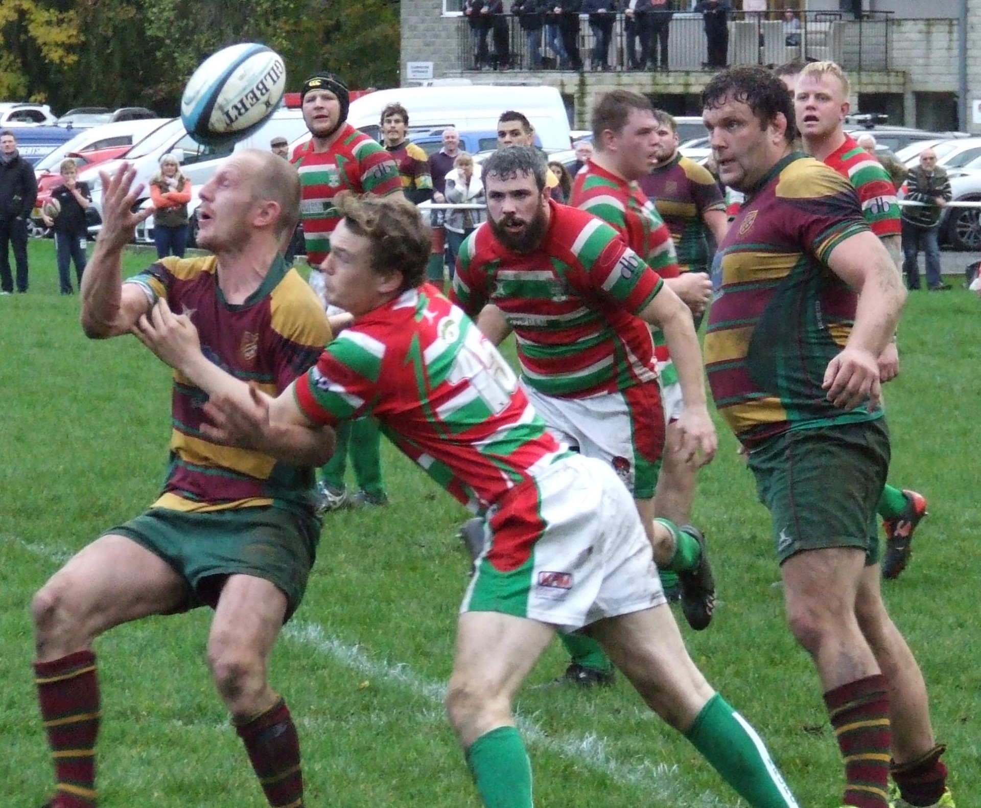 Tom Baxter’s throwing at the lineout was accurate, putting Heath in control with Richard Brown, Olly Cook and Chris Moore making yardage. Then Eddie Cartwright came bursting through from fly-half and Keighley conceded another penalty on 25 mins but this was a missed opportunity for Heath to have taken the lead.