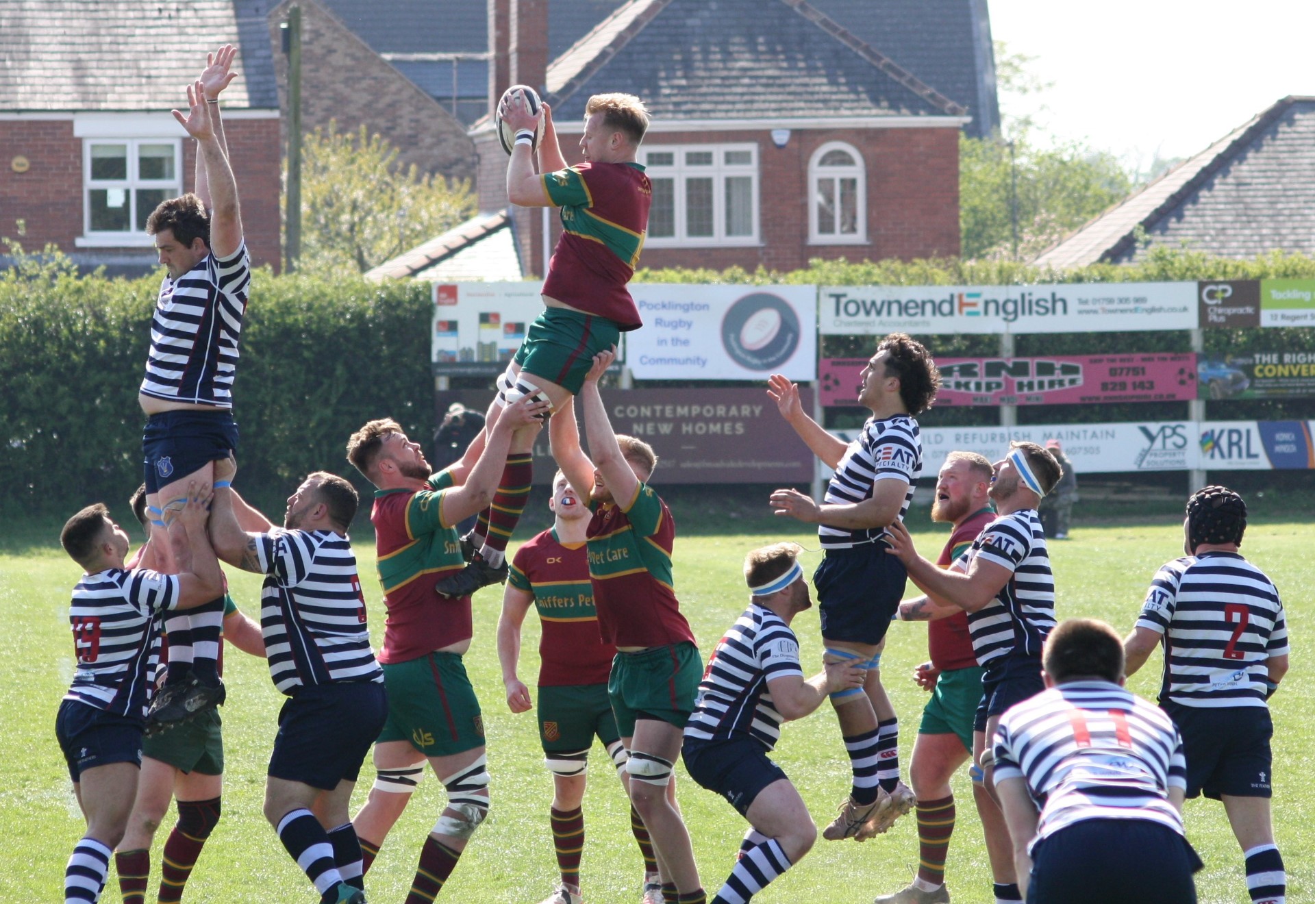 Heath travelled over to East Yorkshire looking for 2 points to secure a promotion spot but had to overcome an in-form Pocklington team. Paul Turner was unavailable so George Heron had a starting berth at prop in an otherwise unchanged team. The atmosphere around the ground was tense in the warm-up session and a large contingent of Heath supporters had travelled to hopefully witness a competitive encounter, but many were hoping there would not be a repeat of the West Hartlepool result a couple of seasons ago.