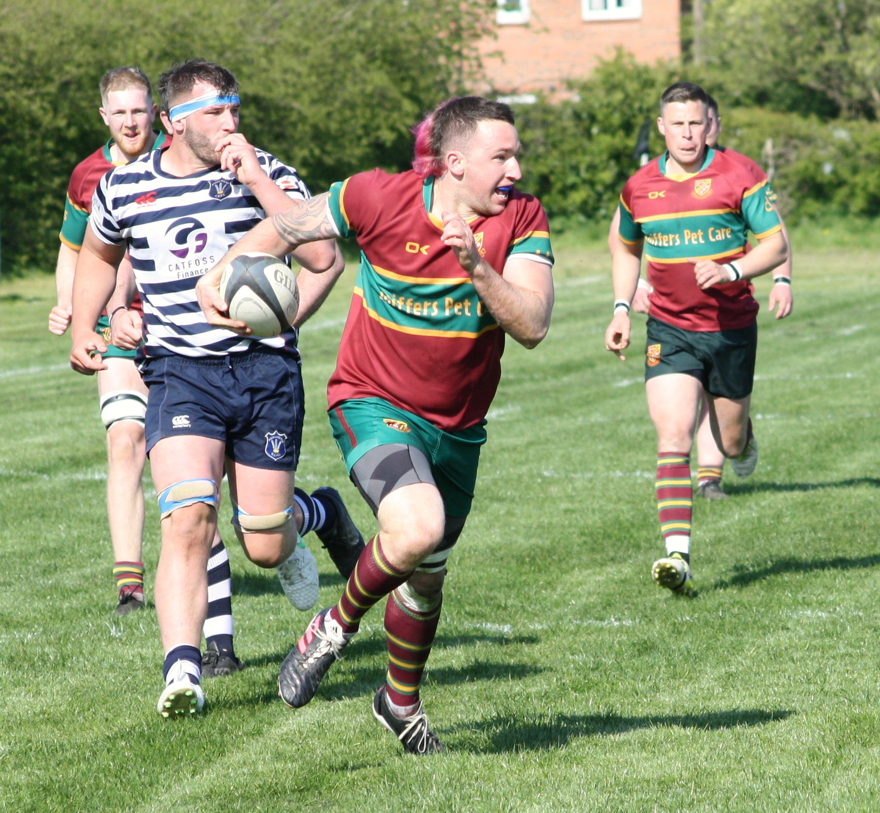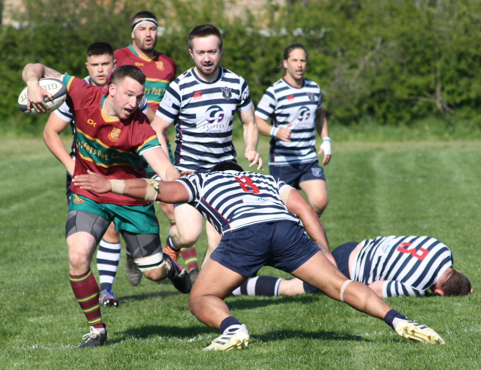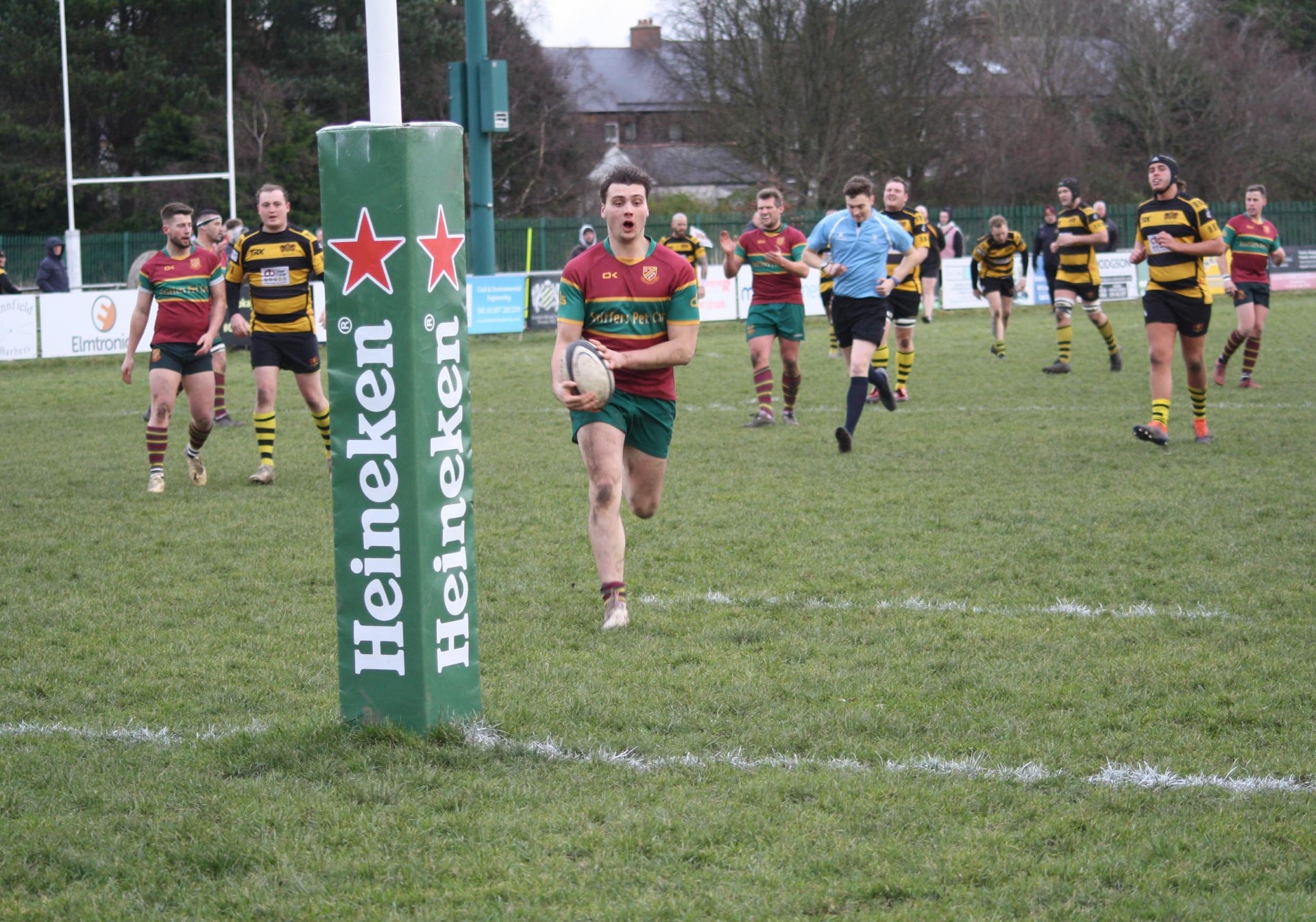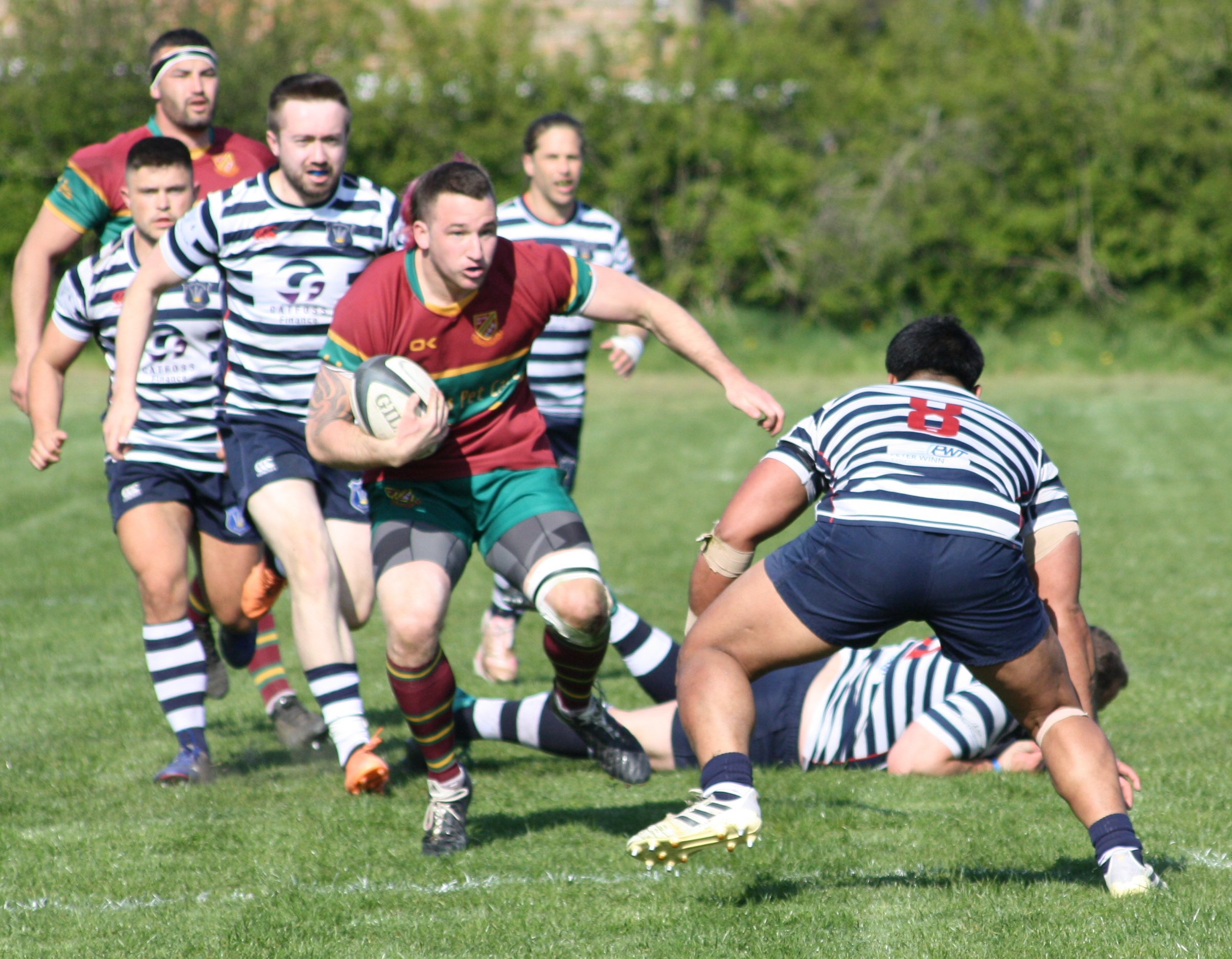 From the re-start Bull kicked deep and the home side were content to punt the ball back up field where Jason Merrie collected it, on the halfway line. What happened next stunned the crowd as Merrie set off on a barnstorming run, powering through and over attempted tackles from the home side to score a bonus point fourth try - again converted by Bull and Heath led 31- 21 on the hour mark.