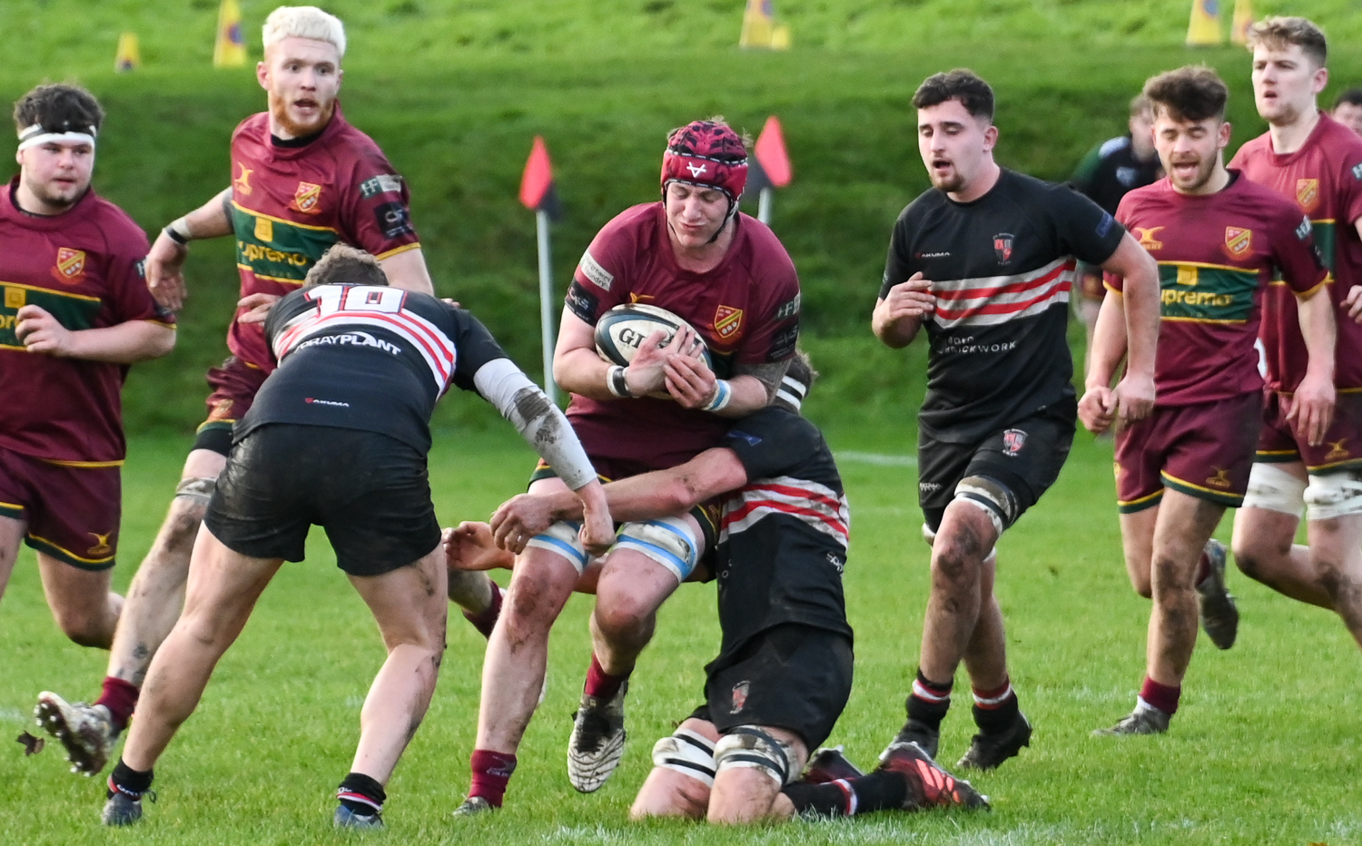 Bruce left the field succumbing to the groin injury. The pressure got to Heath, 2 yellow cards in quick succession and the game was swinging Brods’ way, 12-17. However this Heath team is made of sterner stuff, too a man they battled for each other, Keighley-Payne, Dancey and Sharp to the fore defensively with West and Thornton solid in midfield.