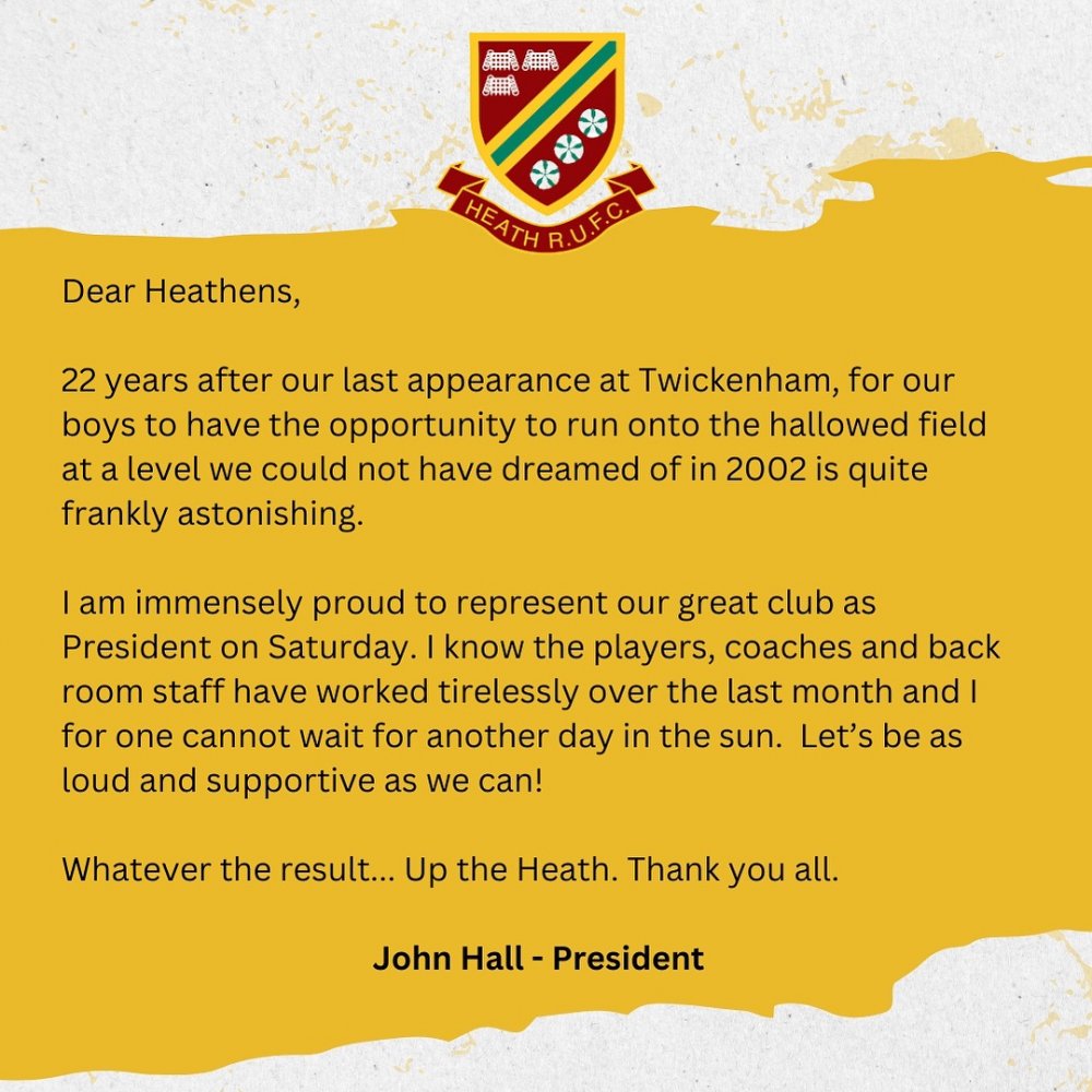President John Hall summed up the general feeling at the Club: “22 years after out last appearance at Twickenham, for our boys to have the opportunity to run onto the hallowed field and at a level we could not have dreamed of in 2022, is quite frankly astonishing.”
