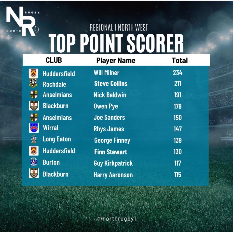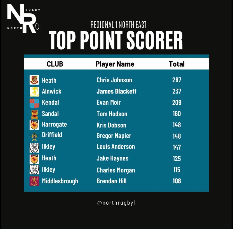 Chris Johnson - Top Points-scorer in both North East & North West Divisions. Tally = 287.