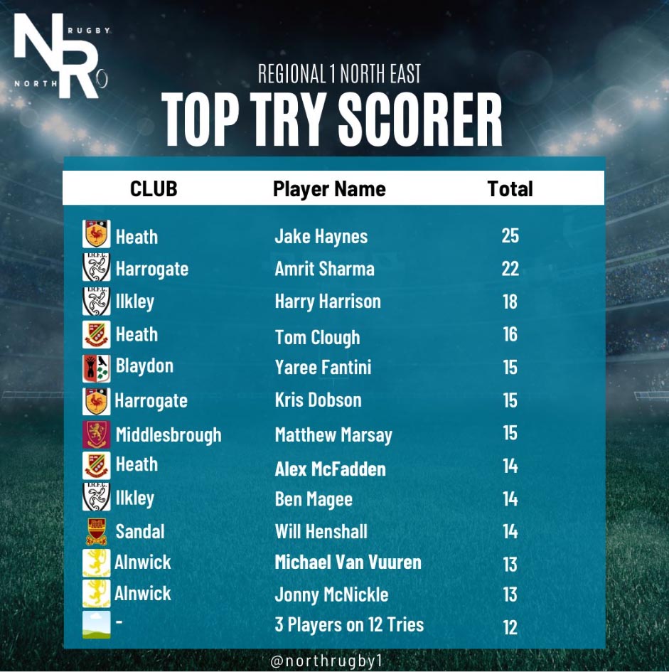 As well as Heath being League Toppers, some of our Players are headliners themselves - being Top Scorers, etc, in Regional 1 N E.